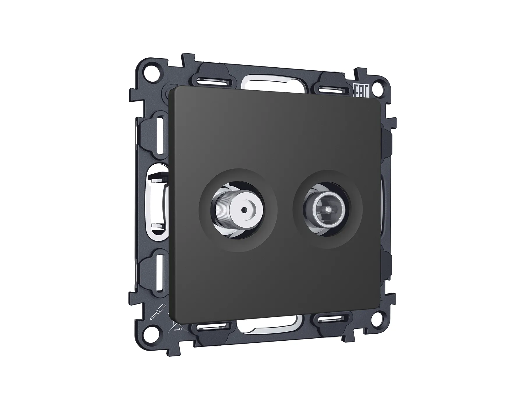 MA913310 Комплект механизма розетки TV оконечной + SAT 5-862MHz 3.5dB/950-2150MHz 3.5dB ALFA Графит мягкое касание QUANT (AP9133, VM217)