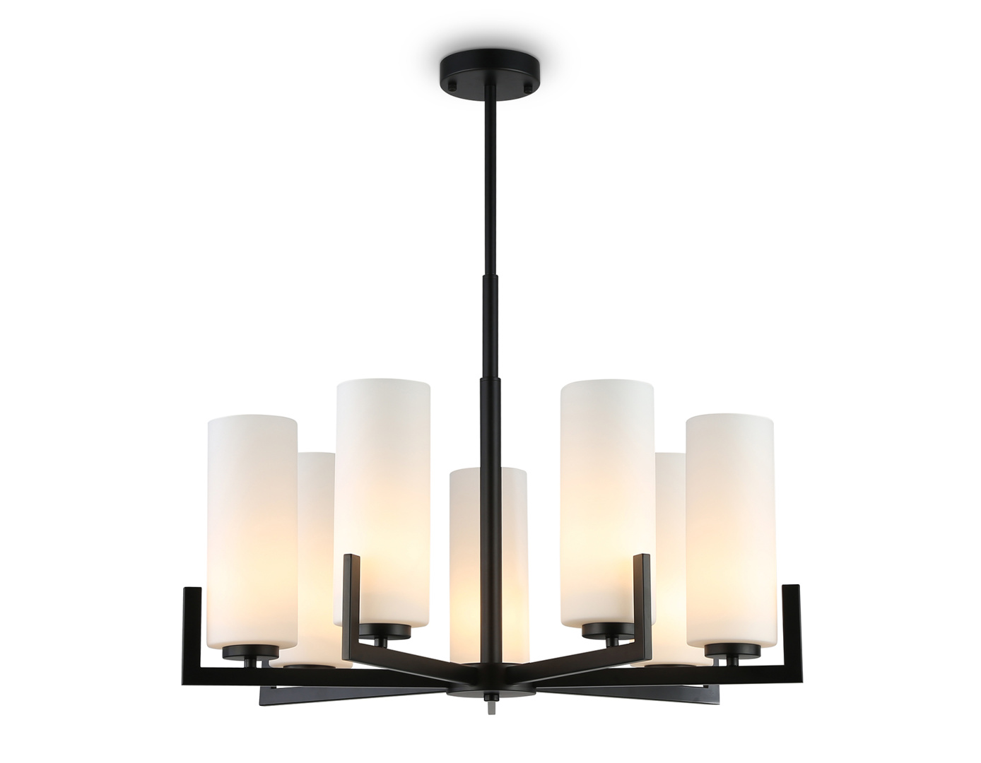 Люстра на штанге из коллекции HIGH LIGHT. Модель LH56058 представлена в современном стиле модерн. Светильник выполнен из металлического каркаса черного цвета и белых стеклянных плафонов. Для данной модели подойдет сменная лампа с цоколем Е27. Светильник будет прекрасным дополнением в любом помещении.