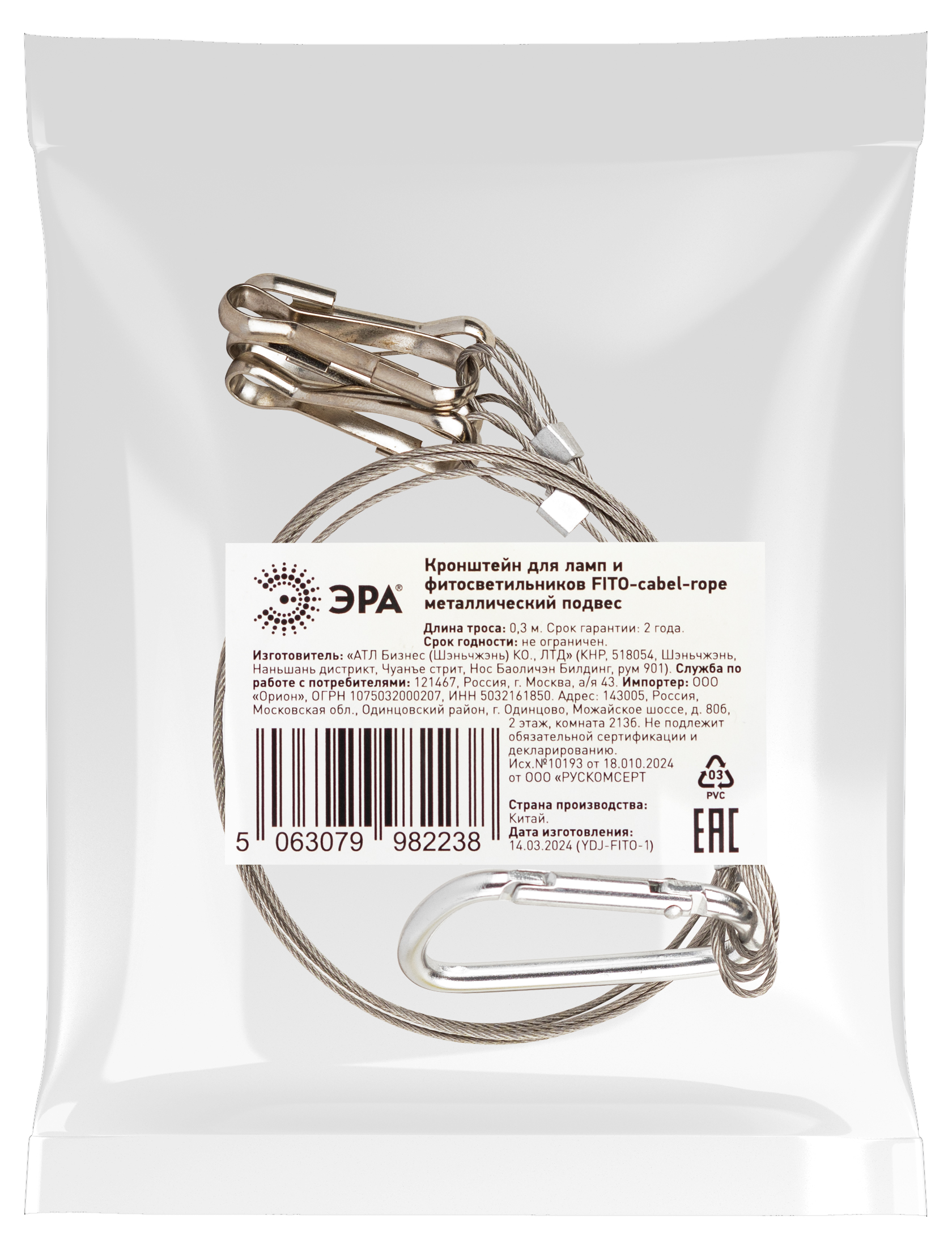 Тросовый подвес ЭРА FITO-сabel-rope для светильников и прожекторов. Подвес изготовлен из стали, длина тросов 0,3 м. Выдерживает вес до 10 кг.