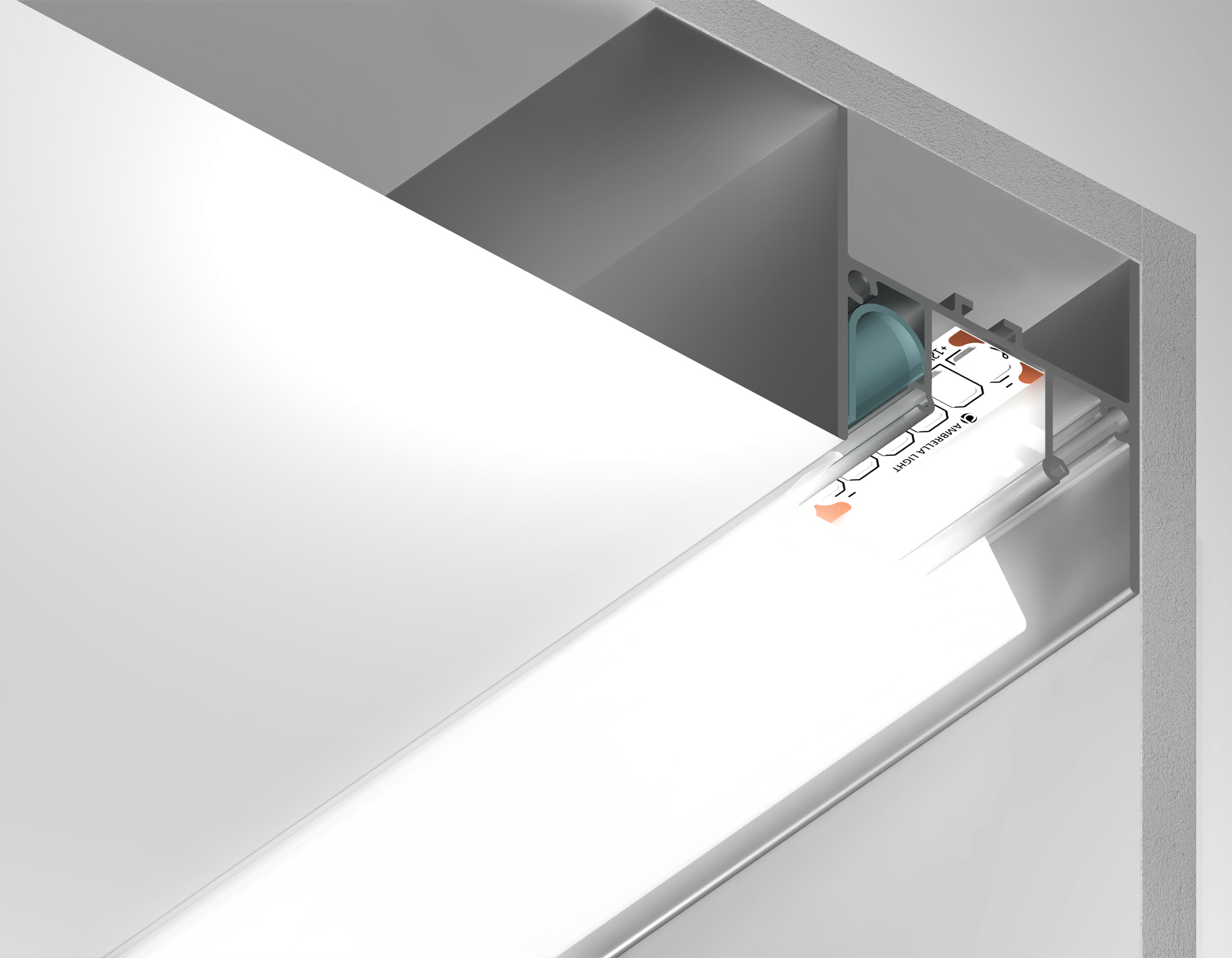 Алюминиевый профиль под натяжной потолок для светодиодной ленты из коллекции ILLUMINATION. Данная модель следующего размера: 2000*51.27*34mm, внутри алюминиевого профиля можно установить светодиодную ленту шириной до 12mm. В алюминиевый профиль уже установлен рассеиватель белого матового цвета, изготовленный из светорассеивающего поликарбоната. Матовый рассеиватель придаст освещению мягкости и комфорта. Алюминиевые профили применяются как для декоративного освещения, так и для основного. В комплект к профилю прилагается 2 заглушки.