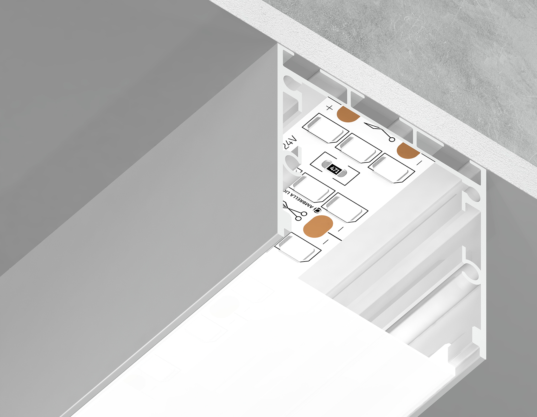 Система алюминиевых профилей «Profile System» позволит воссоздать любой силуэт освещения. Благодаря возможности соединения алюминиевых профилей между собой под любым углом, вы сможете сконструировать свой вариант светильника любой формы и любого размера, который может быть как накладным, так и подвесным. Данный вид освещения вы сможете установить как на потолке, так и на стене.