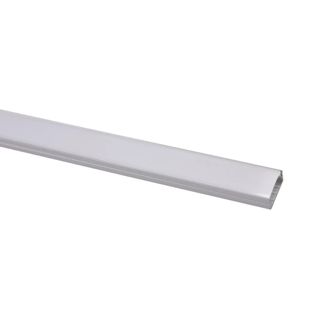 Алюминий, 2м профиль накладной широкий; Комлектация: рассеиватель белый поливинил, клипсы 2шт (монтажная скоба), заглушки 2шт.
