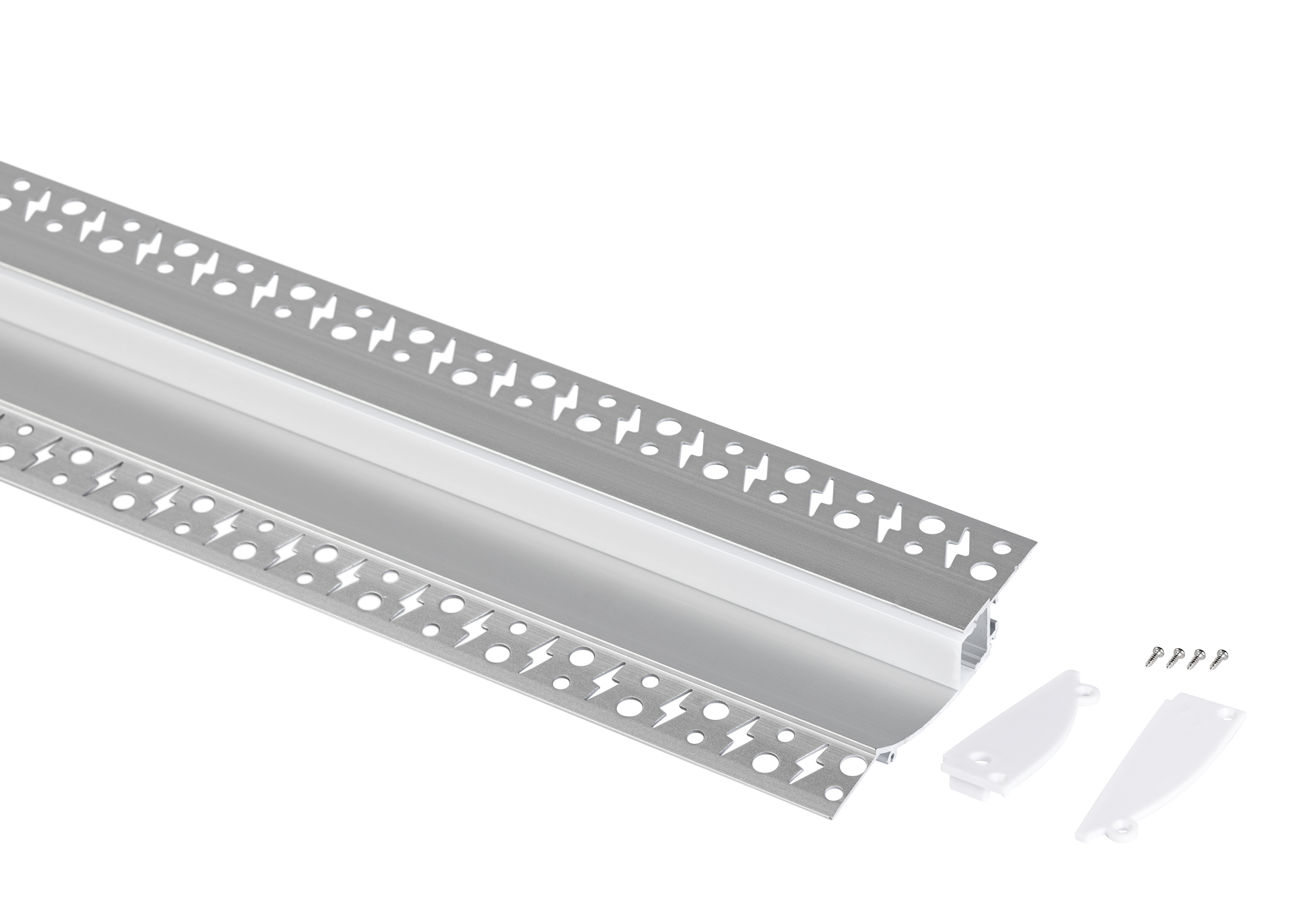 Комплект алюминиевого профиля под штукатурку предназначен для установки светодиодных лент с шириной подложки до 14мм. За счёт отведения тепла увеличивает срок службы светодиодной ленты. Анодированное покрытие обеспечивает устойчивость к воздействиям окружающей среды и легко окрашивается. Эстетично смотрится в интерьере, обеспечивает механическую защиту. В комплекте алюминиевый профиль 9818 98х18,8 мм 2 м, белый матовый экран из поликарбоната 2 м и 2 заглушки.