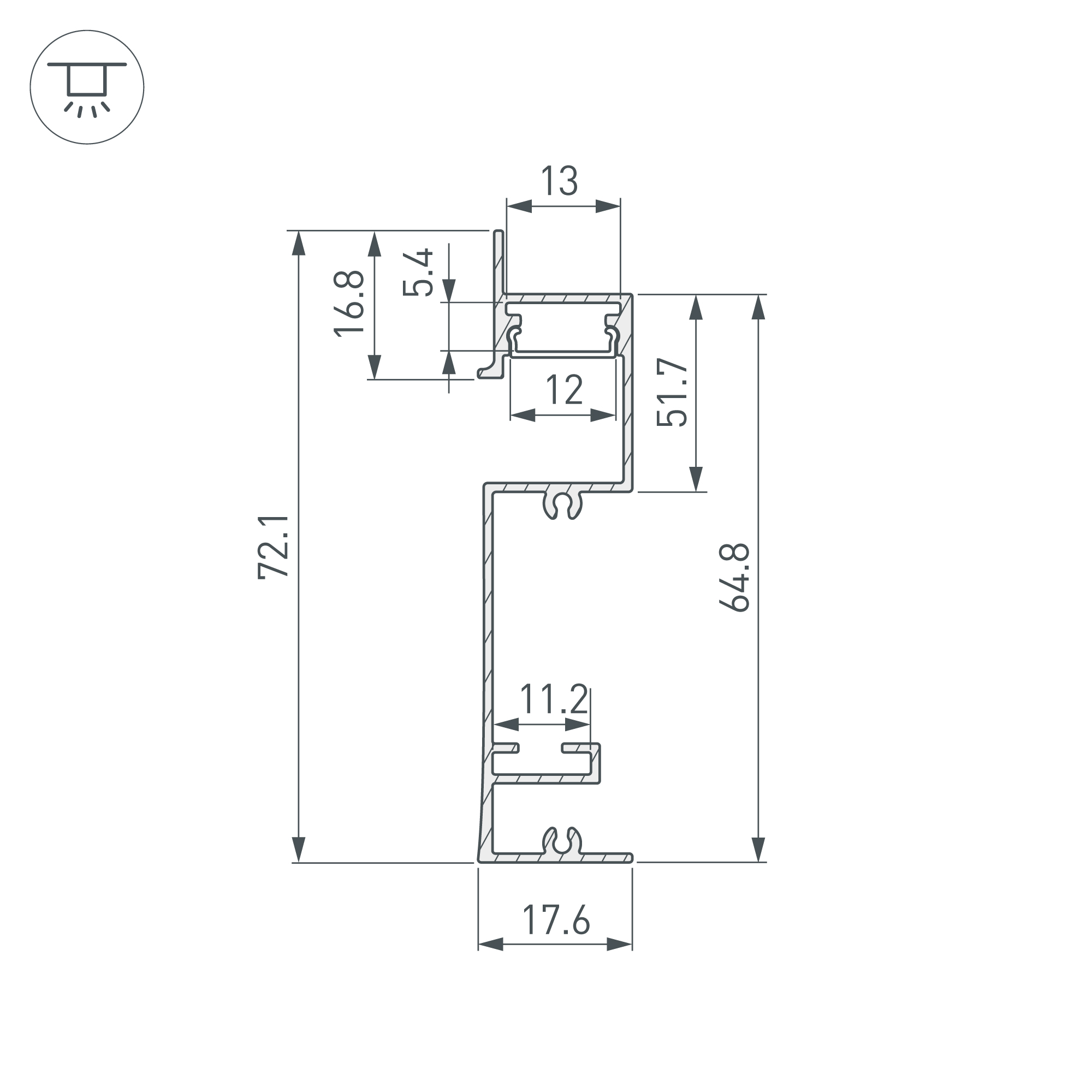 Алюминиевый профиль-плинтус для светодиодных лент и линеек. Цвет - черный RAL9005 (порошковая окраска). Габаритные размеры (L×W×H): 2000x17,6x72,1 мм. Ширина площадки для ленты 12 мм. Аксессуары приобретаются отдельно. Цена за метр.