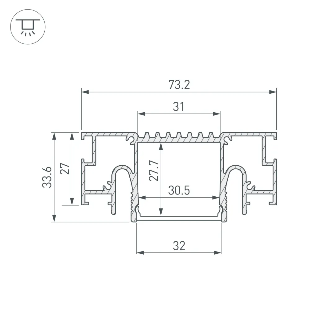 Алюминиевый профиль белого цвета для натяжных потолков (центральная линия). Решение 2-в-1 - каркас для крепления натяжного потолка и профиль для установки светодиодной ленты. Для дизайнерских решений «линии света» в натяжных потолках. Монтируется к потолку накладным способом. Ширина площадки для ленты 31 мм. Длина 2000 мм. Цена за 1 м.