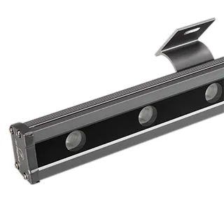 Линейный светодиодный прожектор "WALLWASHER. Мощность 48W, напряжение питания DC 24V. Количество светодиодов 12 штук. Цвет светодиодов RGB-Warm(3000K) (4 кристалла в каждом светодиоде), управление по протоколу DMX512, угол рассеивания 15x45°. Корпус: алюминиевый сплав и армированное стекло. Цвет корпуса серый, степень влагозащиты IP65. Габариты 1000x105x54мм.