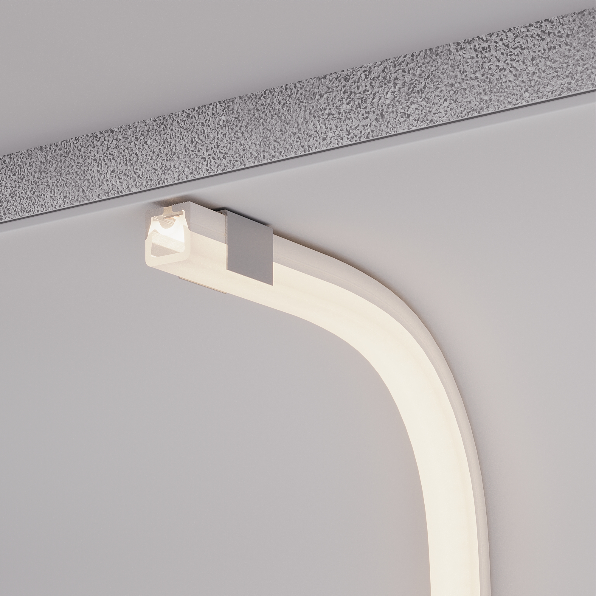 Цельнолитой силиконовый гибкий профиль, белый матовый. Габаритные размеры 10000×20×20 мм. Вертикальный изгиб TOP, минимальный радиус изгиба 60 мм. Для установки во влажных помещениях необходима герметизация при помощи двухкомпонентного эпоксидного герметика. Класс пылевлагозащиты – IP65 (при соблюдении технологии герметизации). Для лент шириной от 10 до 12 мм, высотой до 4 мм и мощностью до 10 Вт/м. Угол излучения 140°. Поставляется в катушках по 10 м. Цена за 1 м.