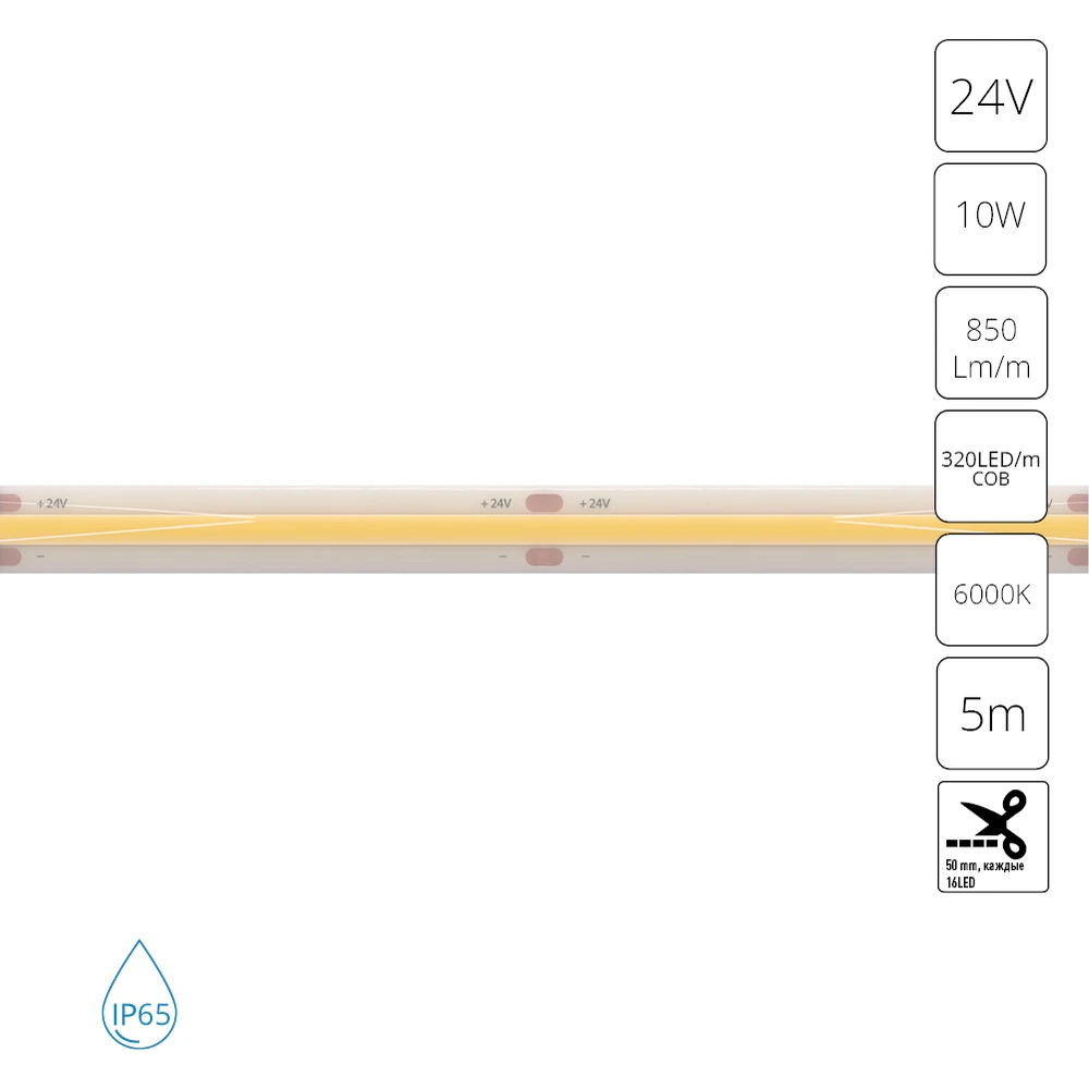Светодиодная лента 24V 10W/m 6000К 5м IP65 Arte Lamp AQUA LANE A2432008-06-6K
