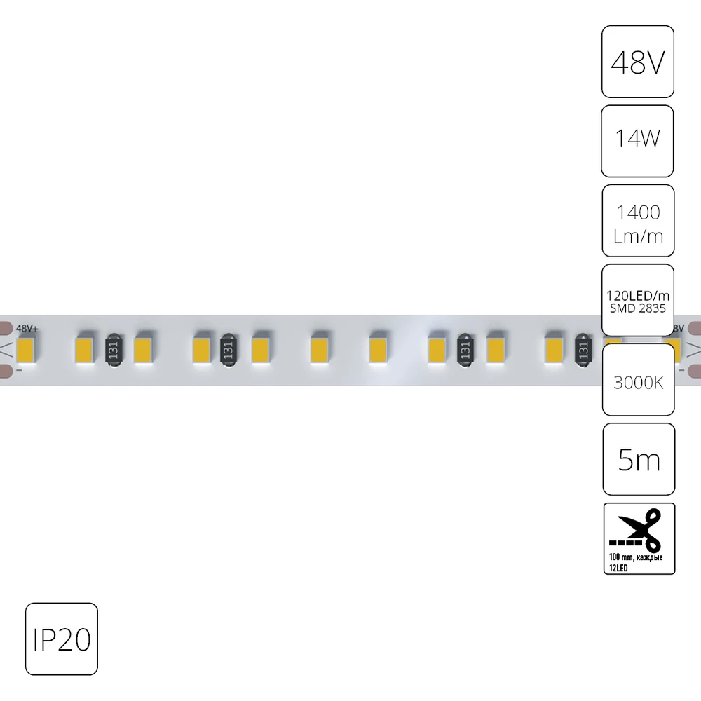 Светодиодная лента 48V 14,4W/m 3000К 5м IP20 Arte Lamp TAPE A4812010-05-3K