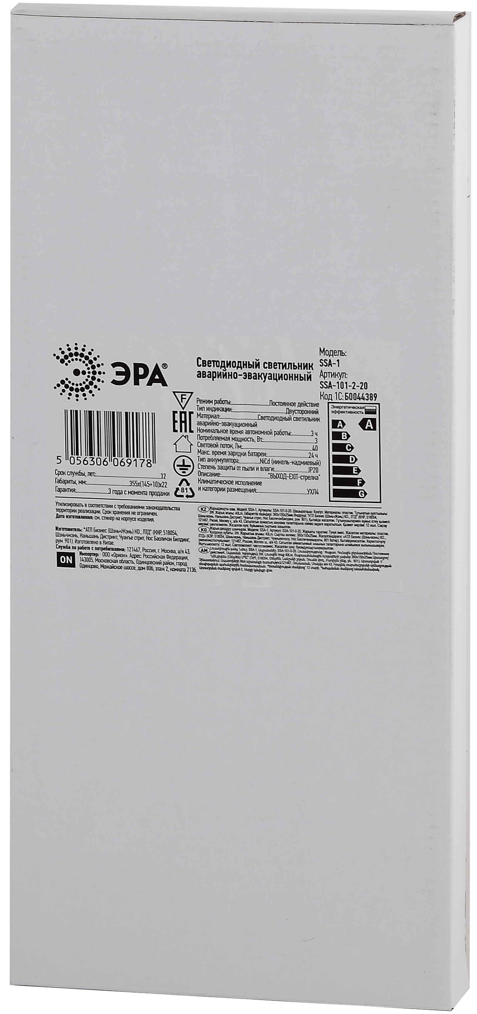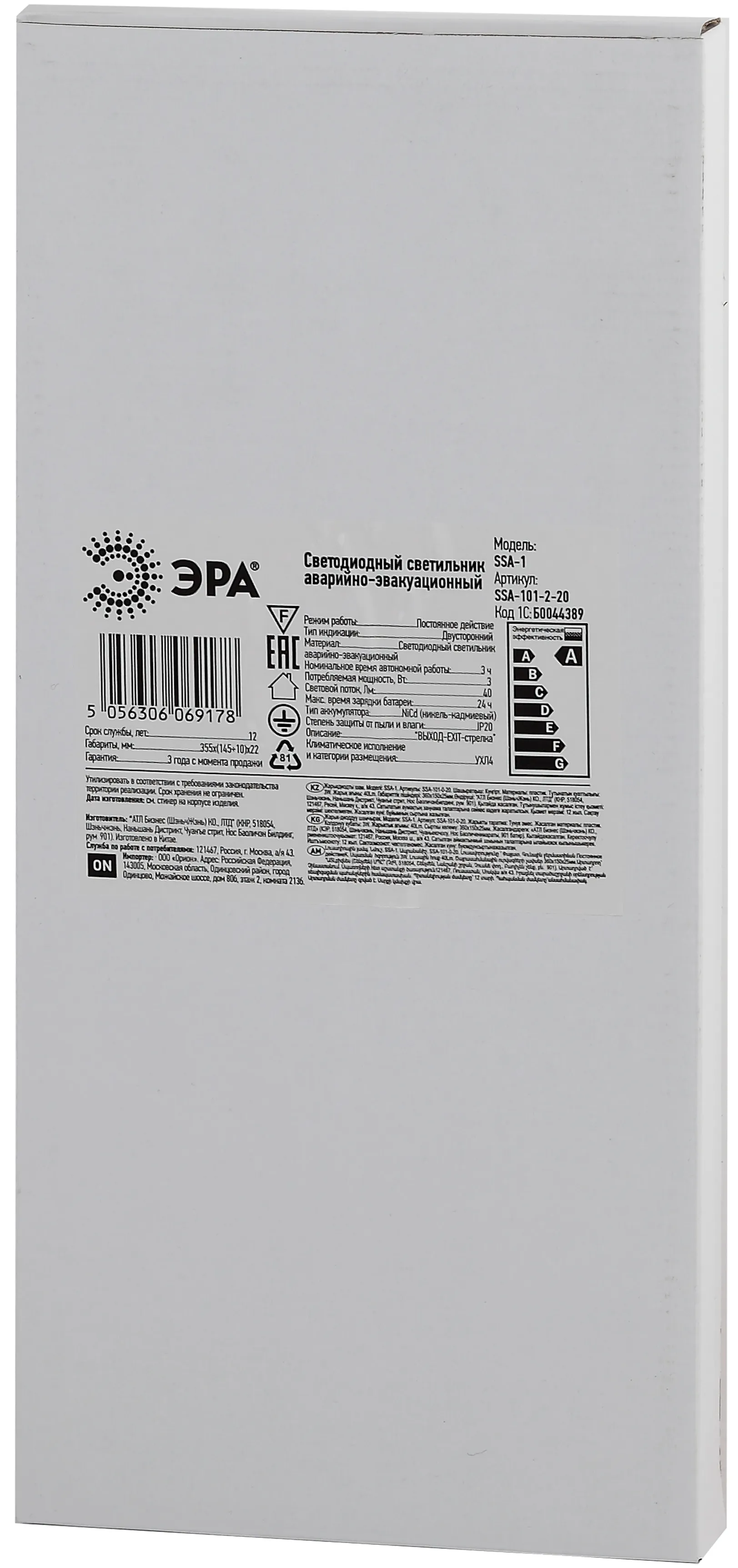 Светильник аварийный светодиодный. Область применения: Предназначен для указания мест выхода при эвакуации, направления движения, а также для различных информационных целей; ВЫХОД-EXIT; не менее 180 минут работы в аварийном режиме; наличие кнопки "ТЕСТ" для проверки работы в аварийном режиме. Гарантия: 3 года. Диапазон рабочих температур:(+1+35). Класс энергоэффективности: A. Климатическое исполнение: УХЛ4. Преимущества: ВЫХОД EXIT-стрелка; не менее 180 минут работы в аварийном режиме; наличие кнопки "ТЕСТ" для проверки работы в аварийном режиме. Цветовая температура:6500K. Материал корпуса: алюминий. Габариты: 363х152. Потребляемая мощность: 3Вт. Степень защиты от окружающей среды: IP20. Тип рассеивателя: матовый. Тип кривой: Д. Питающее напряжение светильника: 230Вт.