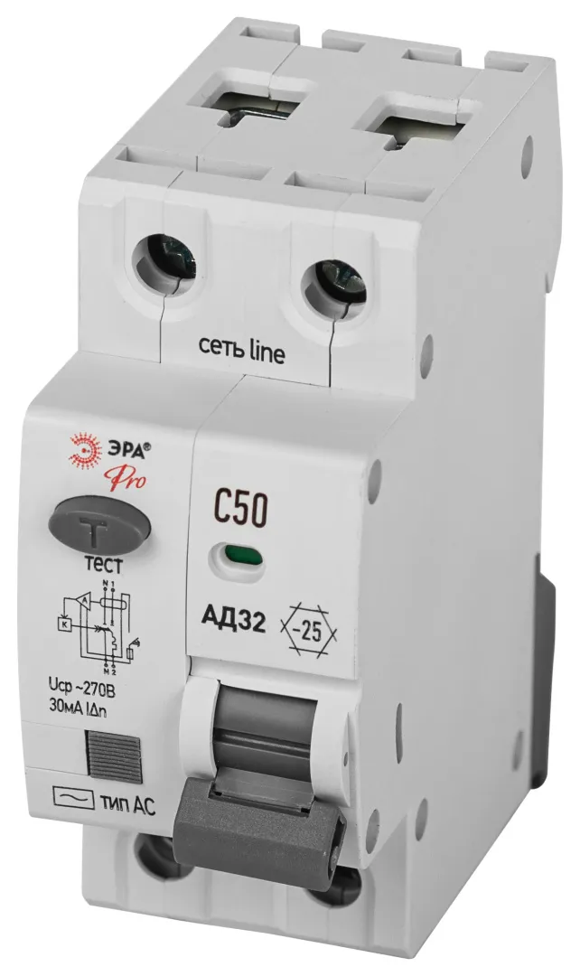 Авдт 4,5ка эра pro d32e2c50аc30p ад-32 электронное 1p+n c50 30ма тип аc защита 230в б0057359