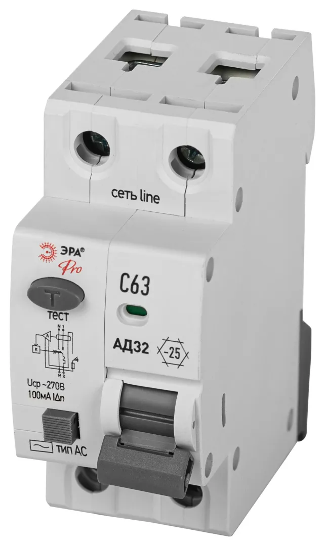 Авдт 4,5ка эра pro d32e2c63аc100p ад-32 электронное 1p+n c63 100ма тип аc защита 230в б0057358