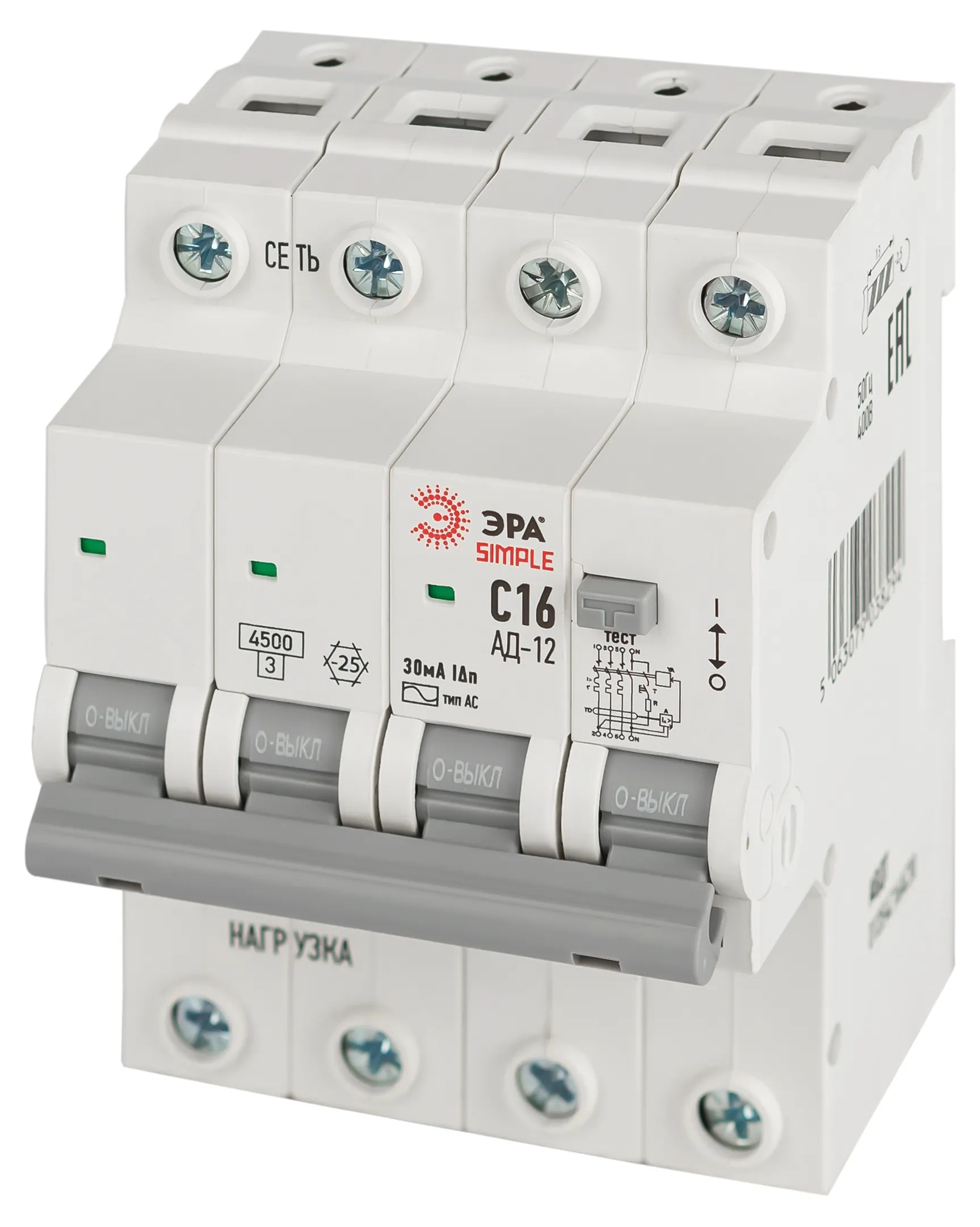 Авдт 4,5ка эра simple d12e4c16ac30 ад-12 электронное 3p+n с16 30ма тип ас б0058927