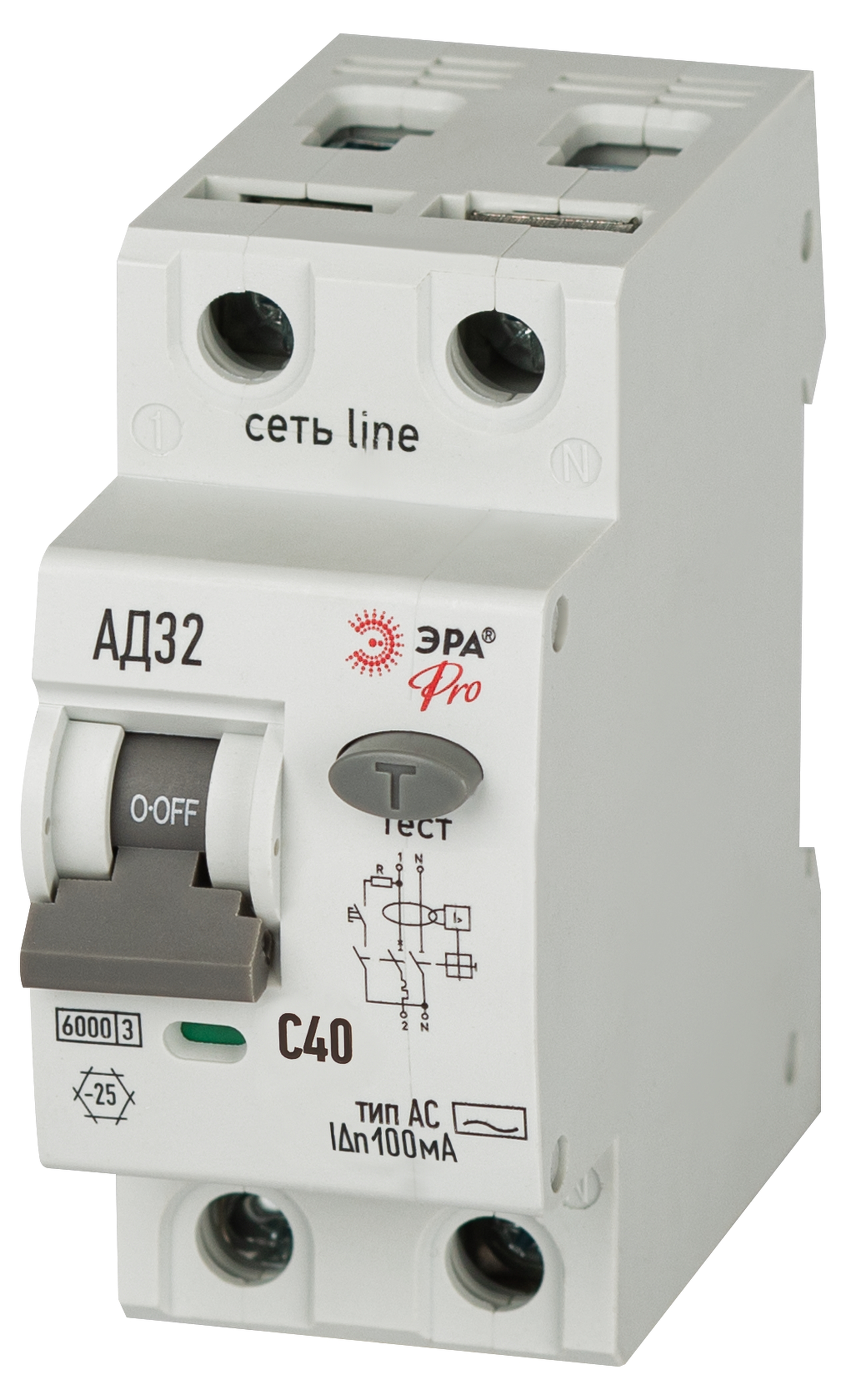 Авдт 6ка эра pro d326m2c40аc100 ад-32 электромеханическое 1p+n c40 100ма тип аc б0059134