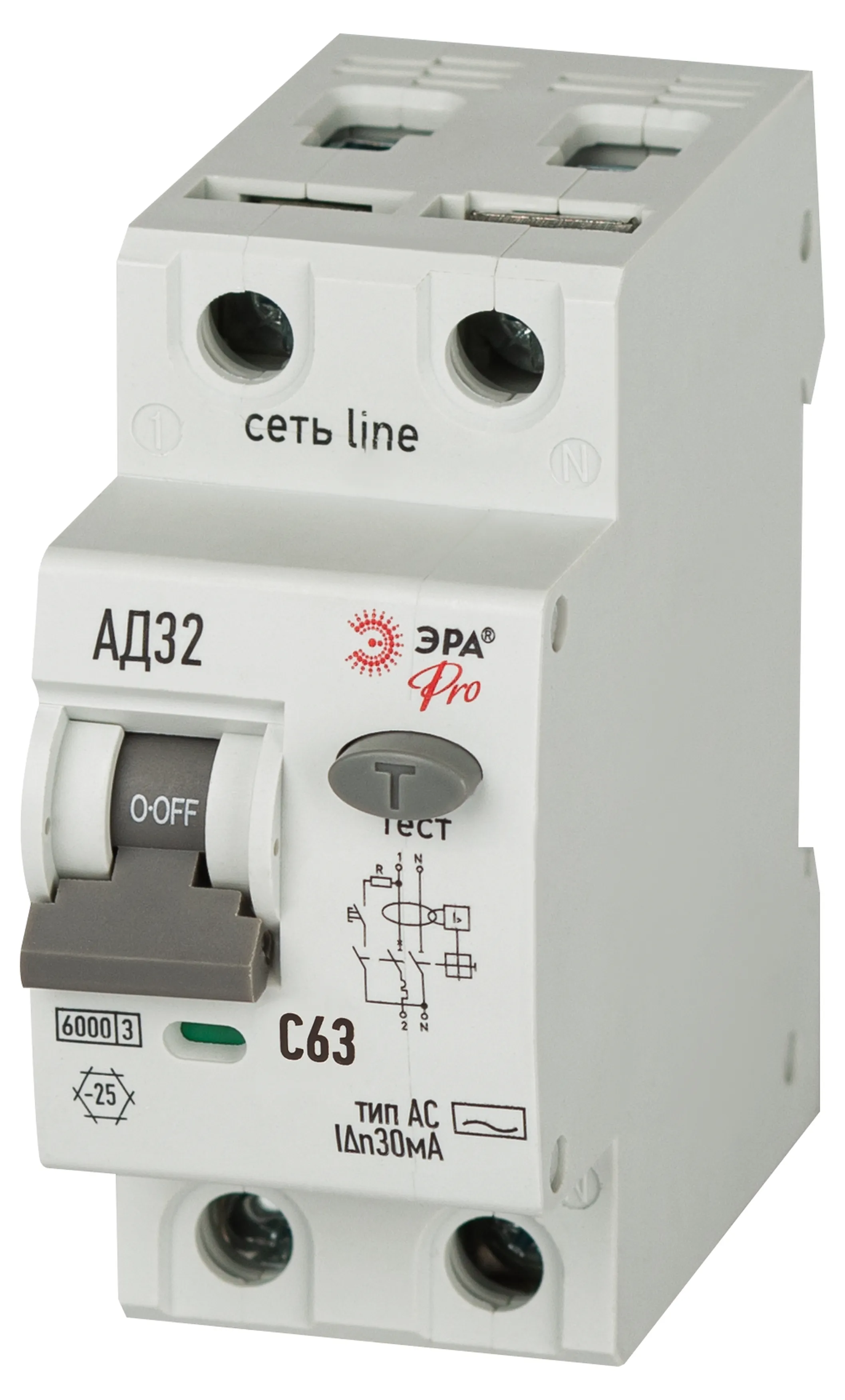 Авдт 6ка эра pro d326m2c63аc30 ад-32 электромеханическое 1p+n c63 30ма тип аc б0059131
