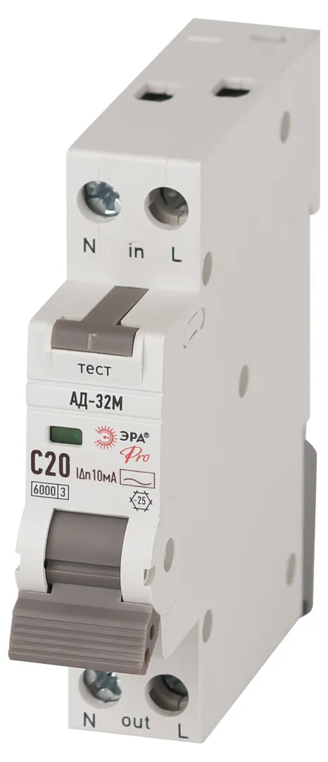 Автоматический выключатель дифференциального тока 6кА ЭРА АД-32М линейки Pro. АВДТ электронного типа. Профессиональные АВДТ ЭРА защищают человека от поражения электрическим током при повреждении изоляции электроустановок, предотвращают пожары вследствие токов утечки, предохраняют от перегрузки и короткого замыкания. Рекомендуются для защиты групповых линий, питающих розетки наружной установки, розеток и освещения подвалов и гаражей. Современное решение для квартирных щитков и промышленного применения.