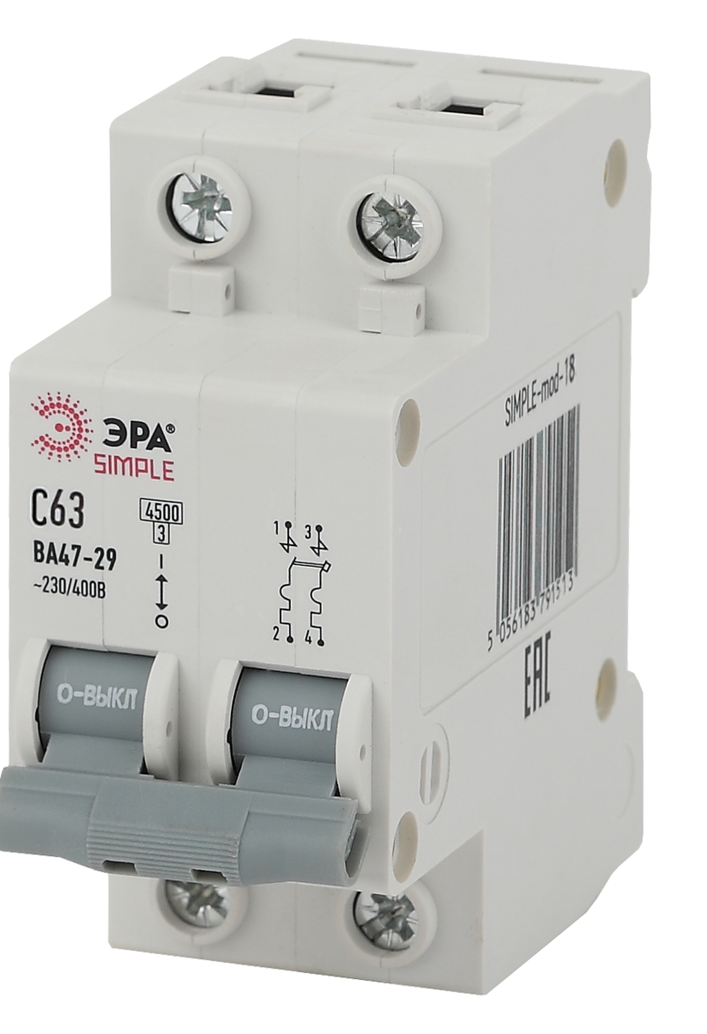 Автоматический выключатель - контактный коммутационный аппарат, способный включать токи, проводить их и отключать при нормальных условиях в цепи, а также включать, проводить в течение нормированного (заданного) времени и автоматически отключать токи при нормированных ненормальных условиях в цепи, таких, как токи короткого замыкания. Автоматические выключатели бывают одно-, двух-, трёх- или четырёхполюсными и имеют следующие конструктивные узлы: главную контактную систему, дугогасительную систему, привод расцепляющего устройства, расцепители. Автоматические выключатели ВА47-29 предназначены для защиты распределительных и групповых цепей, имеющих различную нагрузку: электроприборы, освещение выключатели с характеристикой В; двигатели с небольшими пусковыми токами (компрессор, вентилятор) выключатели с характеристикой C; двигатели с большими пусковыми токами (подъемные механизмы, насосы) выключатели с характеристикой D.