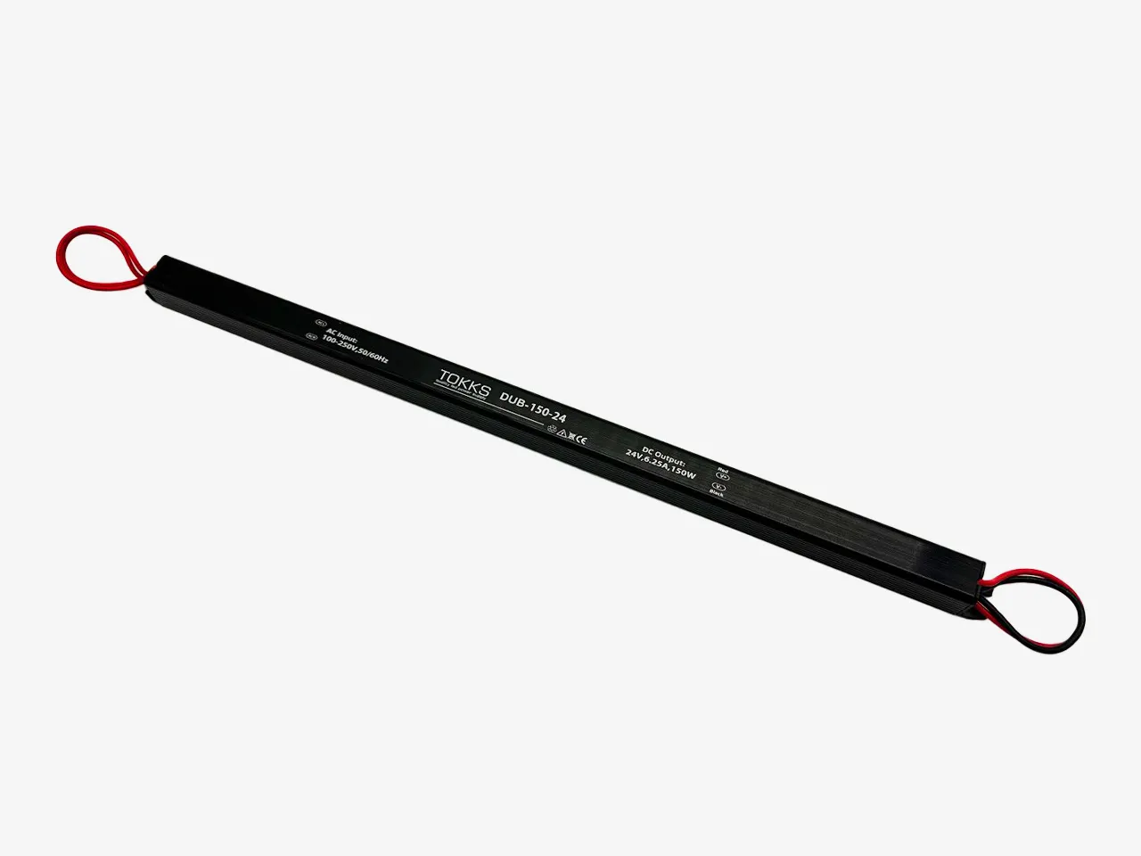Тонкий длинный блок питания на 150 Вт в металлическом корпусе, предназначен для подключения светодиодной ленты как напрямую, так и через ШИМ контроллер.