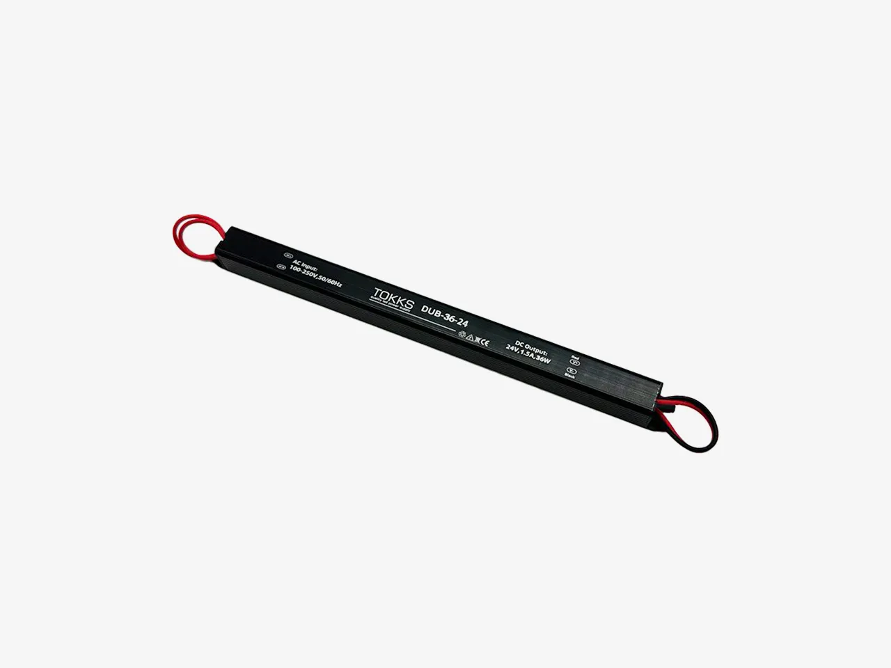 Тонкий длинный блок питания на 36 Вт в металлическом корпусе, предназначен для подключения светодиодной ленты как напрямую, так и через ШИМ контроллер.