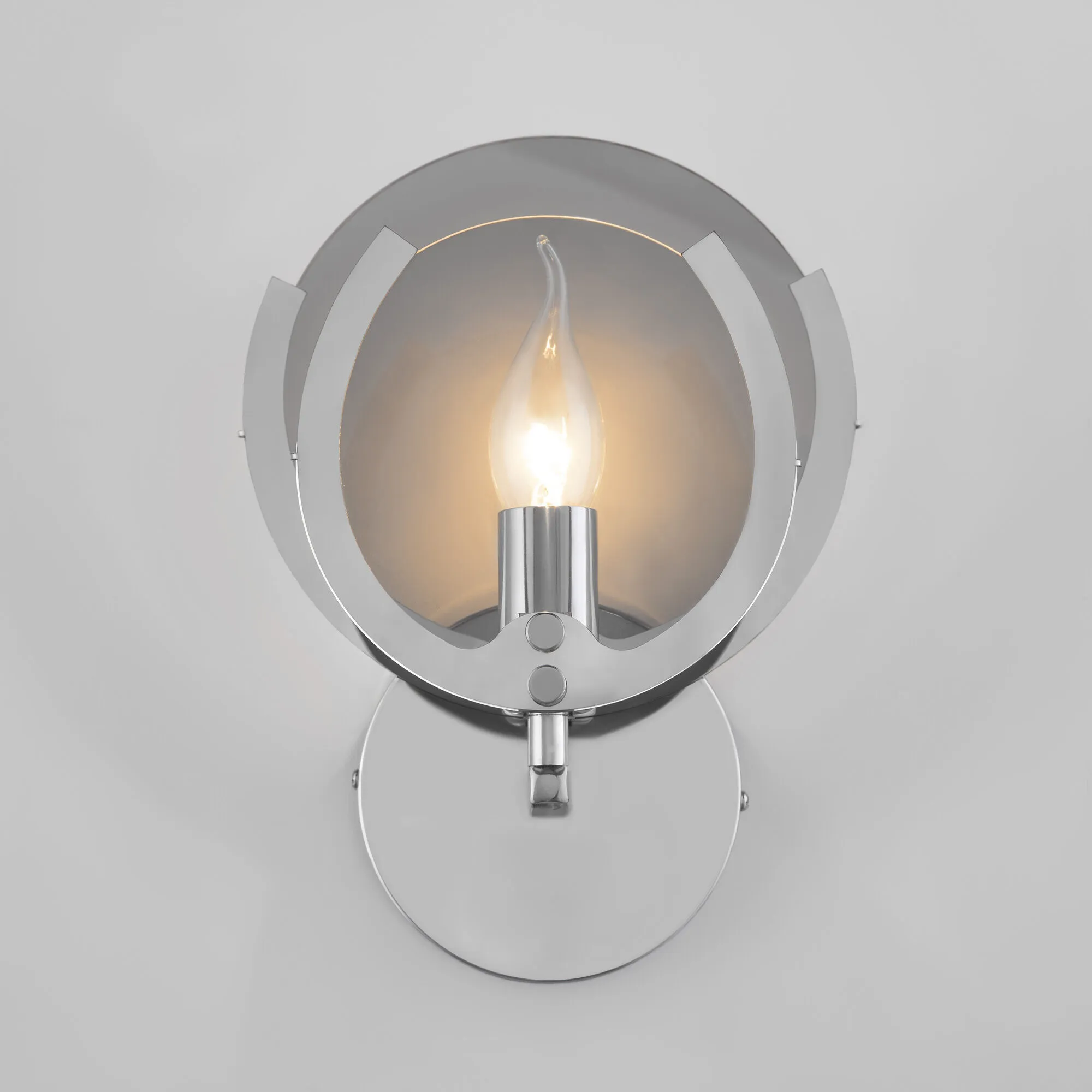 В качестве источника света используются сменные лампы типа "Свеча" или "Шар" с цоколем E14. Патрон рассчитан на максимальную мощность ламп накаливания 60 Вт. Корпус светильника выполнен из высококачественного и прочного металла с надежным хромированным покрытием. Бра легко устанавливается при помощи крепежной планки, которая обеспечивает надежную фиксацию светильника на стене.
