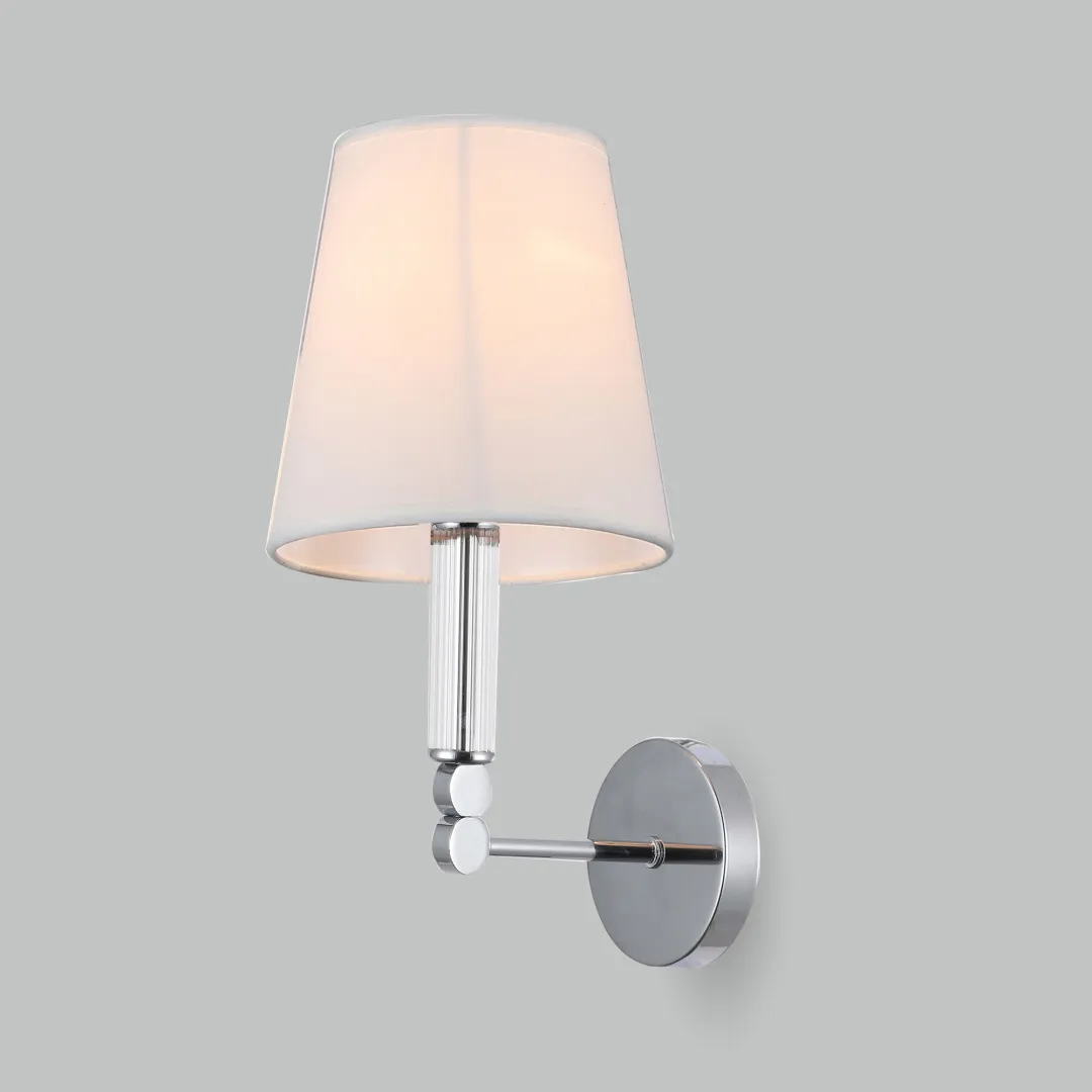 Элегантное бра Conso соединяет в себе изысканный прованс и аристократичность. В дизайне настенного светильника использован изящный тканевый абажур, дающий мягкое рассеянное свечение, и утонченный декор арматуры цвета хром. Основание плафона украшают вставки из прозрачного стекла. В модели используется сменная лампа с цоколем E14. Классический настенный светильник Conso не только наполнит пространство светом, но добавит в интерьер умеренную торжественность.