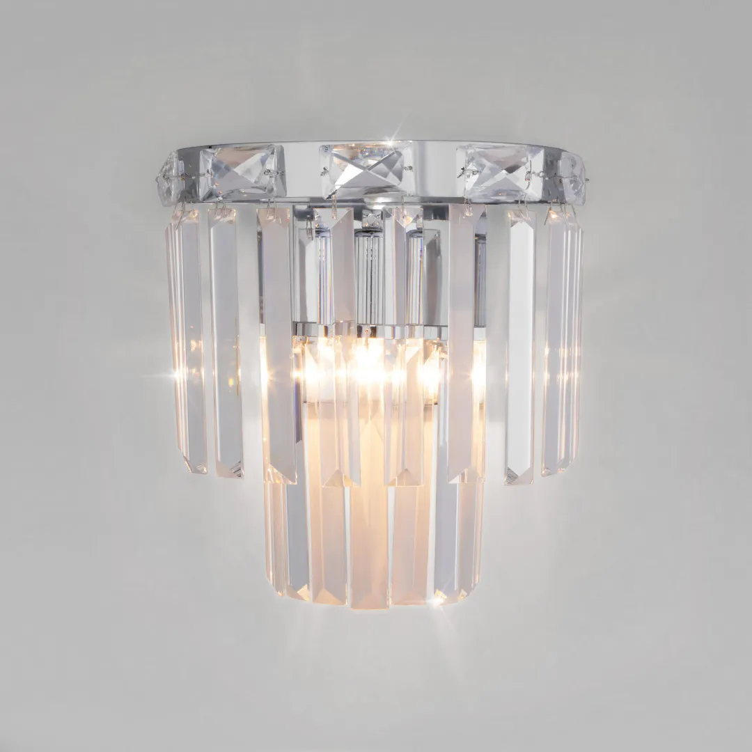 Бра с хрустальным декором 10130/1 из коллекции Elegante станет ярким световым акцентом в классических интерьерах и создаст качественное освещение на площади 2 м². Изящные чаши подсвечников украшены хрустальными подвесками, которые искрятся в лучах света, наполняя помещение выразительным блеском.