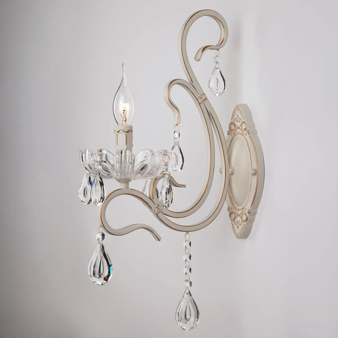 Корпус светильника выполнен из высококачественного и прочного металла с надежным покрытием. Бра легко устанавливается при помощи крепежной планки, которая обеспечивает надежную фиксацию светильника на стене. Классическое бра с легкими формами гармонично сочетается с хрустальными люстрами и станет отличным завершением композиции вашей гостиной или спальни.