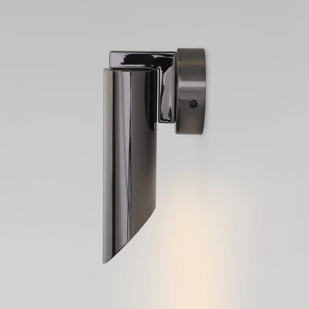 Дизайнерское бра Wing в трендовом цвете черного жемчуга понравится всем, кто ценит лаконичную геометрию и минимализм в оформлении современного интерьера гостиной, спальни, зала или прихожей. Нестандартная форма изделия включает круглую основу с креплением, изящную ножку и оригинальный плафон.