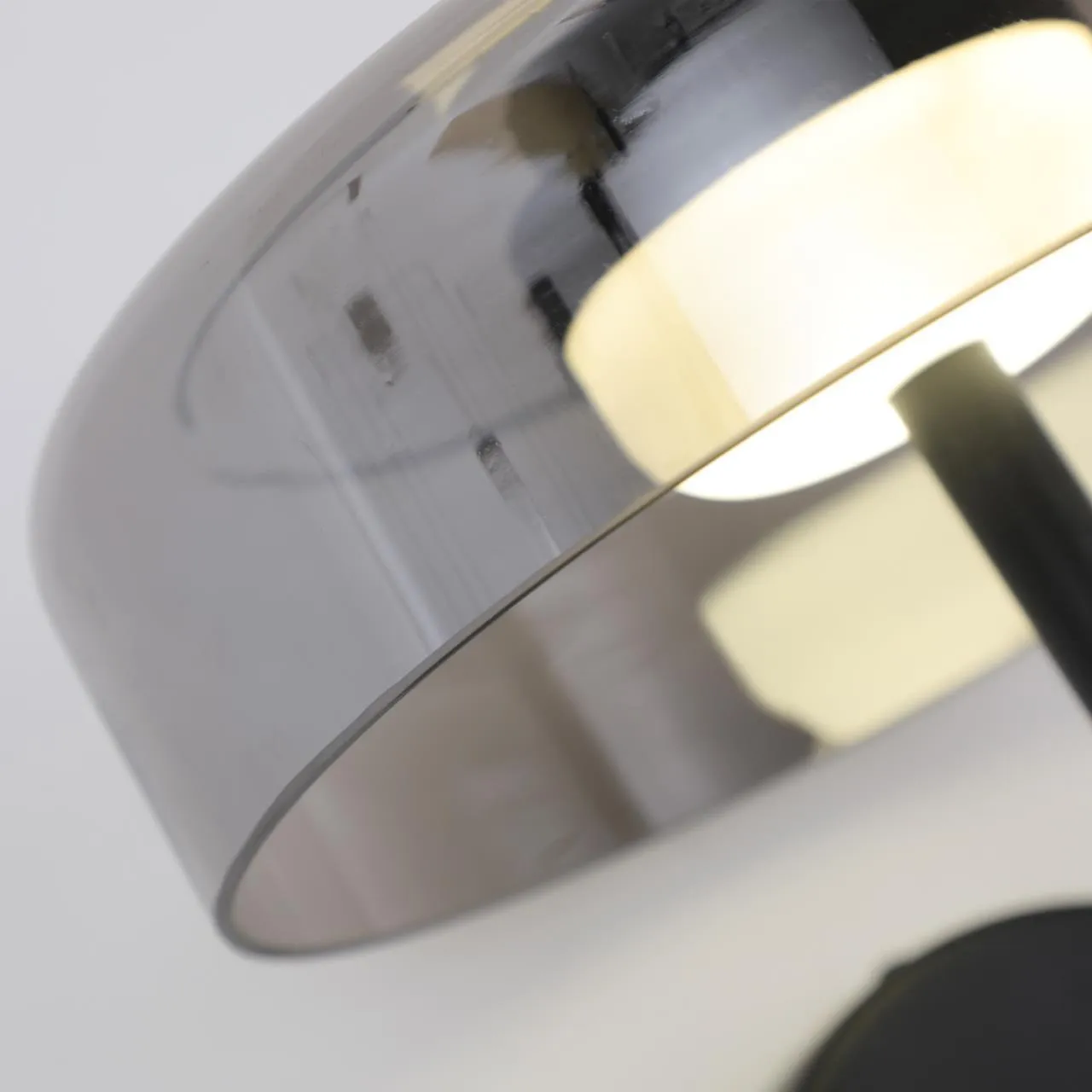 Металлический каркас черного цвета с зеркальносерым плафоном из акрила, модуль LED.