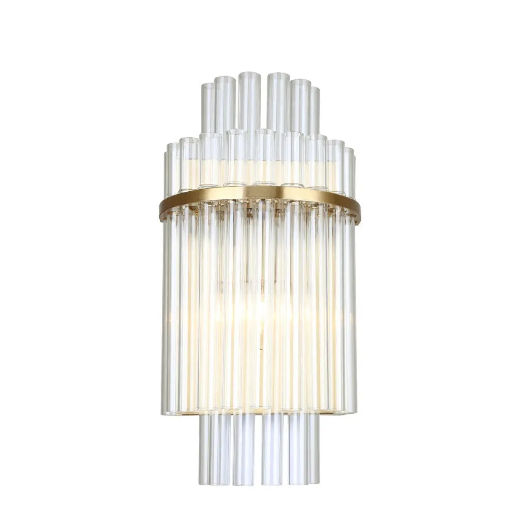 Металлический каркас в цвете латунь, многослойный декор из выдувных стеклянных трубочек.