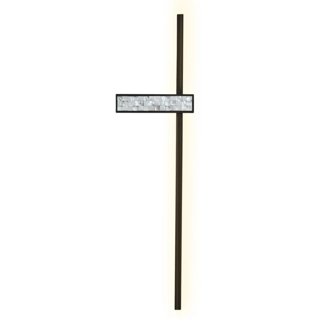 Металлический каркас черного цвета, LED-лента на внутренней стороне, декоративный элемент из перламутровых квадратиков из морских ракушек.