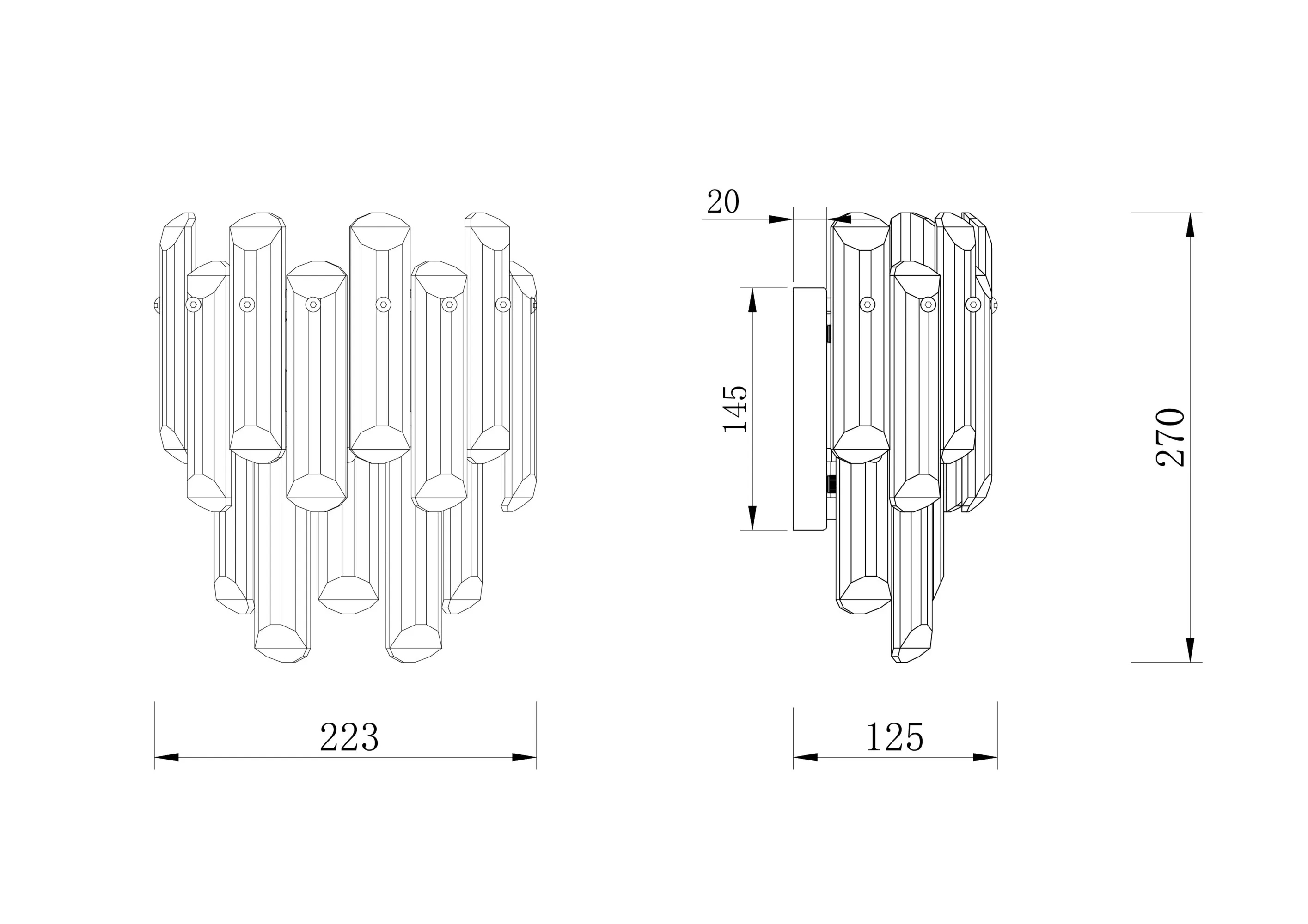 Серия Flare обладает, с одной стороны, праздничным и торжественным, свойственным щедрому ар-деко, настроением, а с другой – смелым и динамичным, идущим в ногу со временем духом. Такой эффект достигается благодаря декоративному оформлению. Традиционный прозрачный хрусталь привлекает своей крупной архитектурной огранкой. Массивные грани легко адаптируются в современных дизайн-решениях. Арматура из металла в золотом цвете подчеркивает богатство и роскошь модели. В серии представлены 2 подвесные люстры на 6 и 8 ламп, а также бра накладного монтажа на 2 лампы. Высота подвесных моделей регулируется цепью. Все светильники снабжены цоколем для ламп Е14 и имеют яркий узнаваемый дизайн, что позволяет с легкостью комбинировать их в группы.