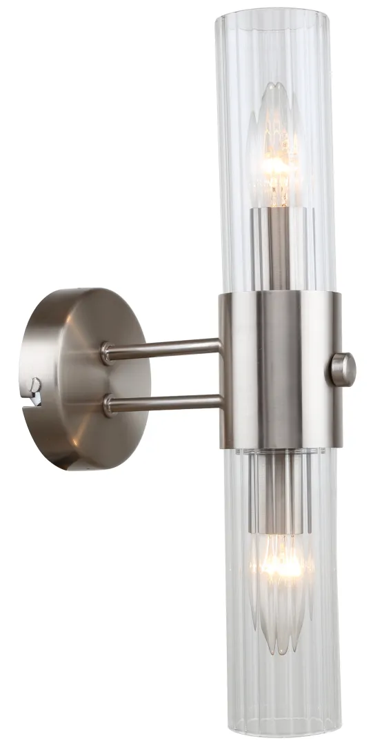 <p>Светильник-бра настенный со стеклянным удлинённым плафоном под 2 лампы - Rivoli Delia (арт. 3146-402). Бра настенное в стиле модерн применяется с лампами Е14 40 Вт, идеально смотрится с лампочками в колбе «свеча». Освещаемая площадь бра – до 6 м2. Размеры бра - 170*100*360 мм. Настенные светильники Delia выпускаются в металлическом корпусе цвета никель сатин. Эти элегантные лаконичные светильники настенные подходят в интерьеры стилей модерн, классика, современная классика. Бра Rivoli Delia можно располагать на стену как вертикально, так и горизонтально. Коллекцию дополняют: большие люстры под 12 и 16 ламп (арт. 3146-312 и 3146-316), подвесной светильник под 2 лампы (арт. 3146-201).</p>