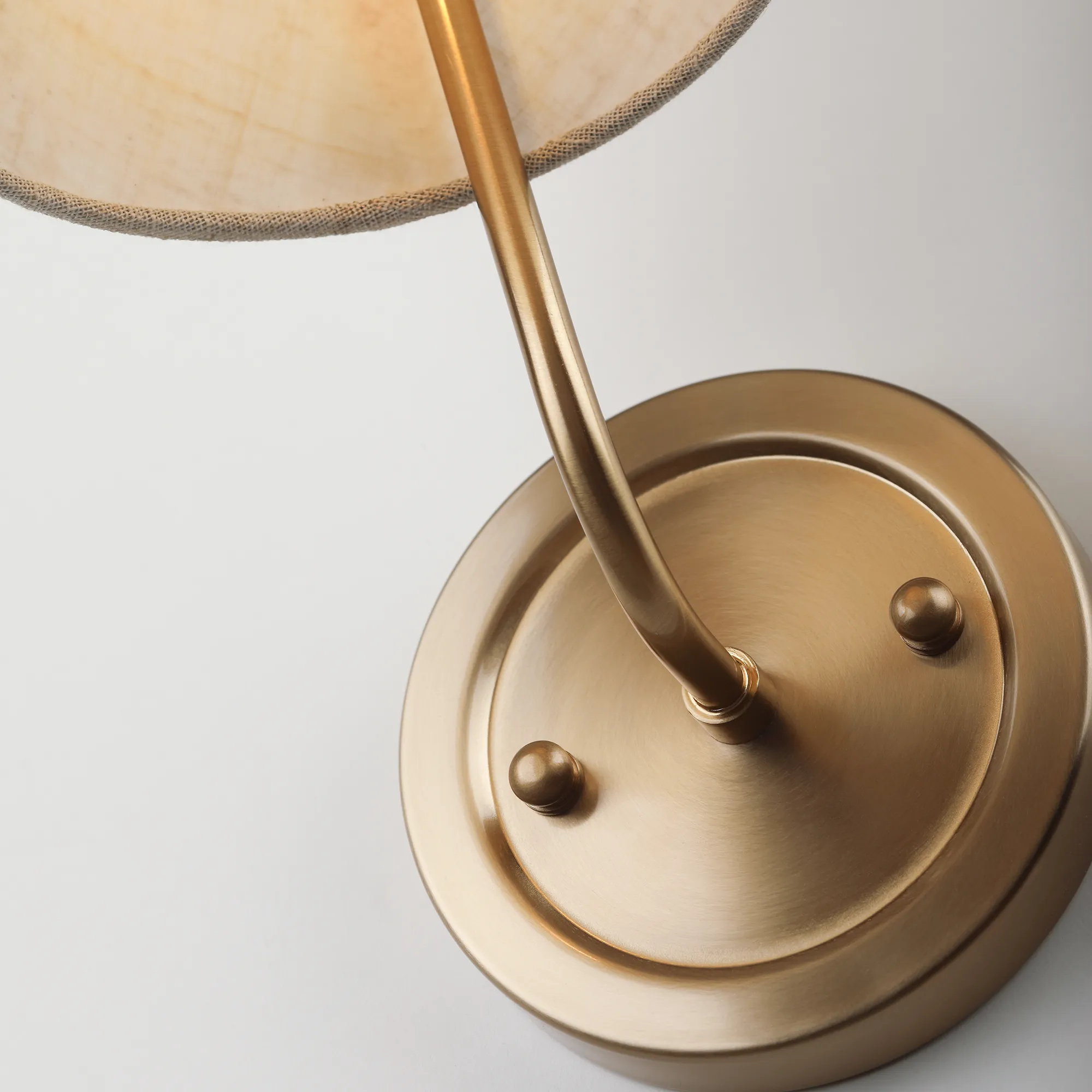 Дизайнерский настенный светильник Rivoli Michele (арт. 4111-401) — сочетание классической элегантности и современного стиля. Корпус светильника-бра выполнен из металла в утонченном золотисто-медном цвете, который придает изделию благородный и изысканный вид. Цилиндрический плафон из бежевой абажурной ткани мягко рассеивает свет, создавая уютную атмосферу в помещении.