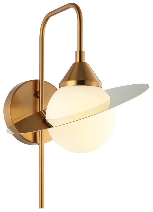 Светильник настенный из коллекции Saturn выполнен из металла, гальванизированного в цвет бронзы, и декорирован круглым белым матовым плафоном. Для декора плафона используется пластина из нержавеющей стали, отполированная до зеркального блеска, и напоминающая орбиту Сатурна. Пластина лежит свободно, благодаря чему может менять направление отражения глянцевых дисков. Премиальное качество и неповторимыи? дизаи?н светильников идеально подои?дут в современные и дизайнерские интерьеры.