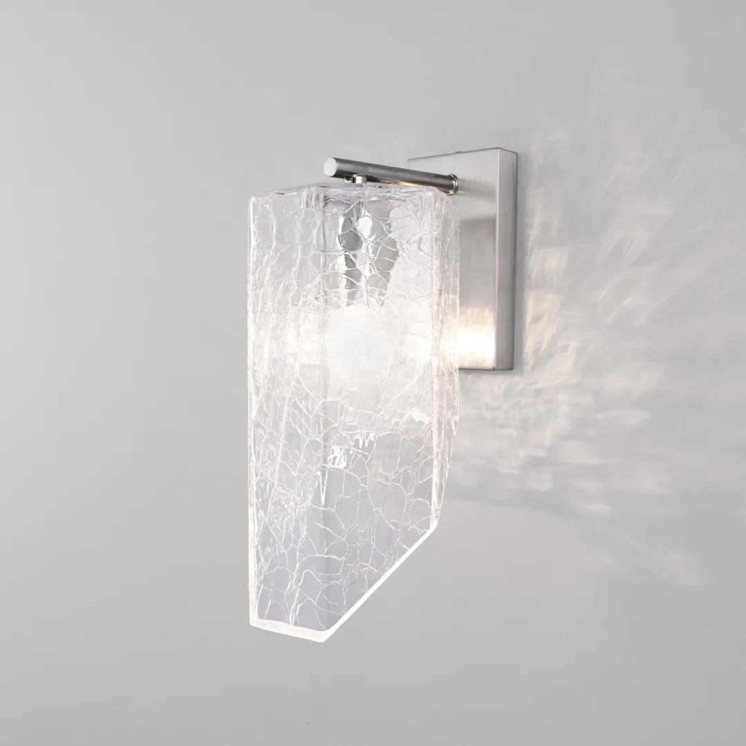 Коллекция Iceberg — настоящее сокровище для ценителей природных форм. Плафоны светильника выполнены в форме шестиугольника, отсылающего к кристаллической структуре льда. Прозрачное стекло, обработанное вручную по технике кракелюр, покрыто сетью тончайших трещинок. Эти «морозные узоры» наполняют интерьер дыханием Арктики.
