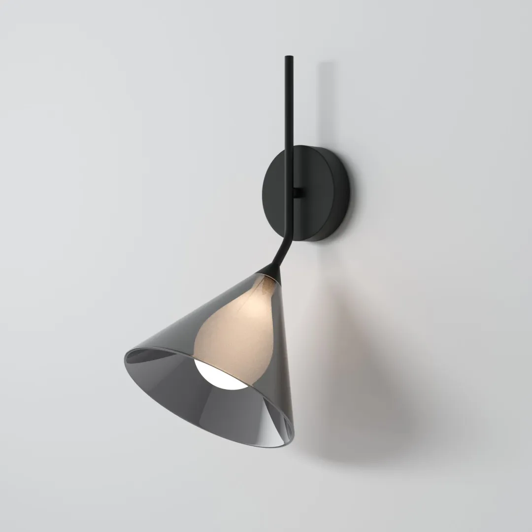 Конусовидные дымчатые плафоны метафорически обнимают округлые молочные плафоны, создавая атмосферу загадочности и уюта. Утонченная черная арматура придает изделиям лёгкость, позволяя им гармонично вписываться в разнообразные стилистические решения.