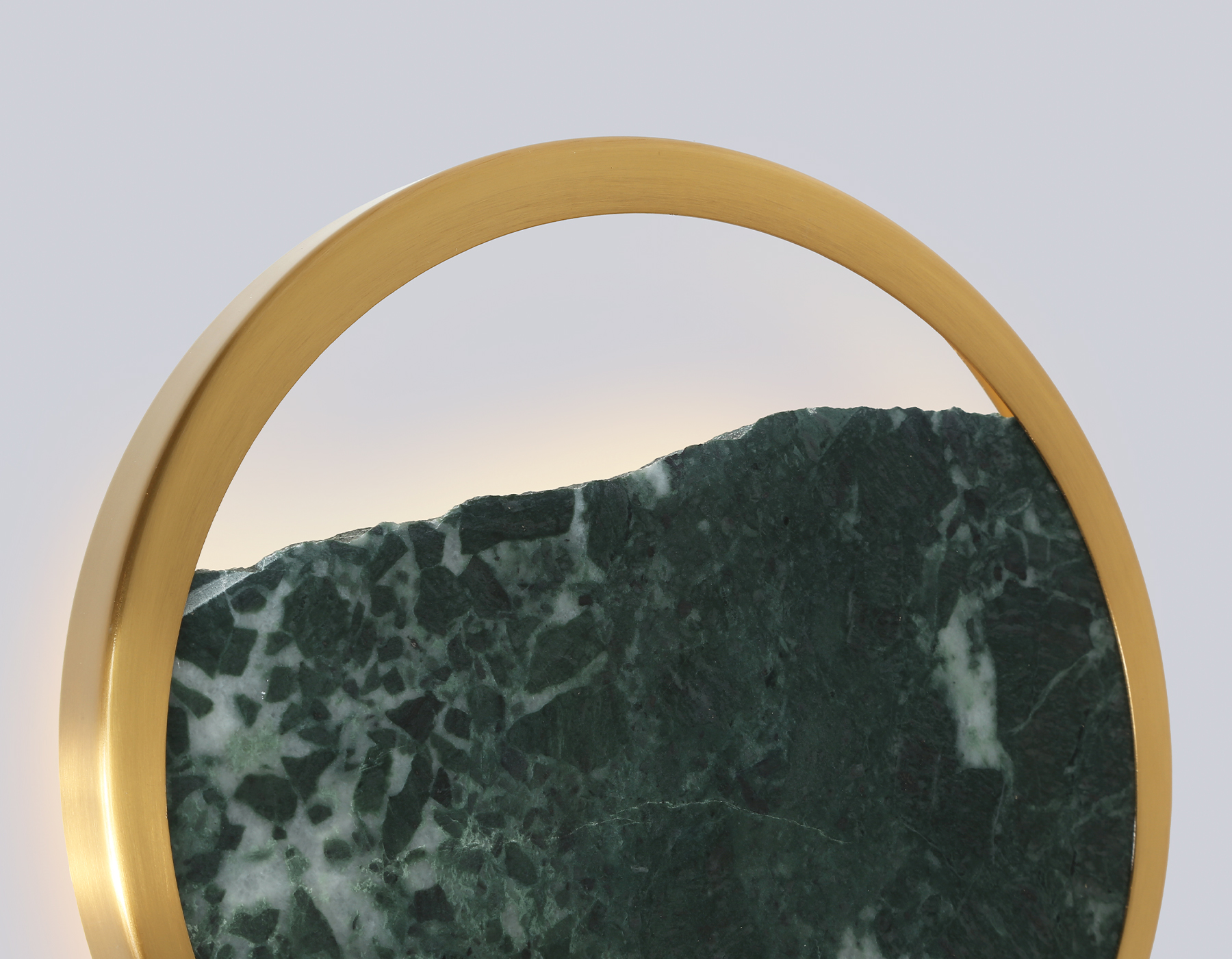 Настенный светильник с мрамором из коллекции HIGH LIGHT. Модель LH53611 представлена в современном стиле модерн. Светильник выполнен из металлического каркаса цвета латунь и декорирован элементами из зеленого мрамора. Эта модель оснащена встроенными светодиодами, благодаря чему вы забудете о замене дополнительных ламп. Светильник будет прекрасным дополнением в любом помещении.