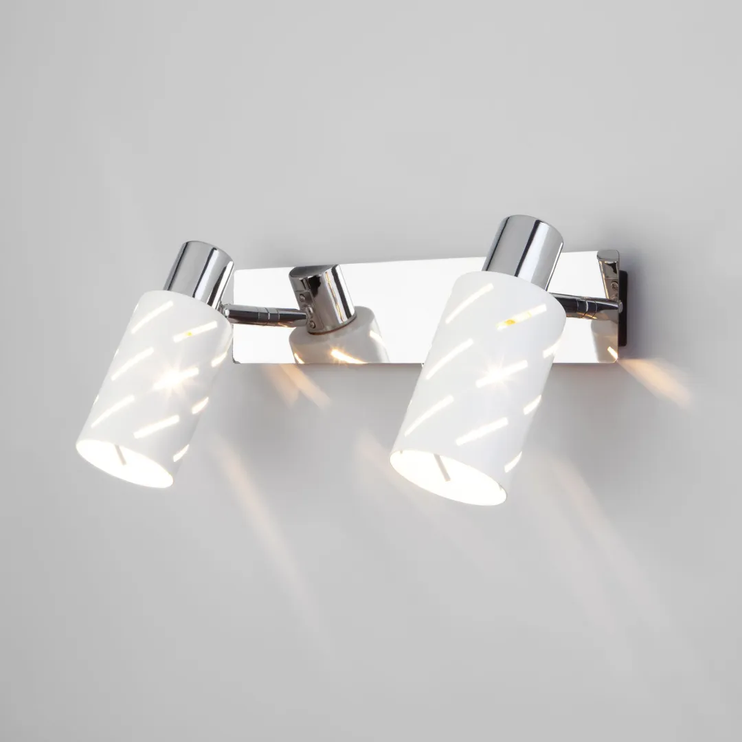 Настенный светильник с поворотными плафонами 20090/1 белый/хром создаст качественное дополнительное освещение и станет эффектным дополнением к основному источнику света. Благодаря белому металлическому плафону бра создает мягкое рассеянное свечение, подходящее для комфортного чтения книг в вечернее время. В качестве источника света используются сменные лампы типа "Свеча" или "Шар" с цоколем E14.