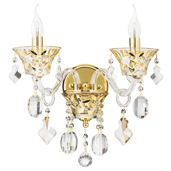 Высота min-max (см): 42; Ширина (см): 40; Глубина (см): 25; Вес (кг): 3,1; Кол-во ламп: 2xE14; Мощность max (W): 60; Цвет основания/цвет стекла или абажура: Gold Clear/Cristal Clear;