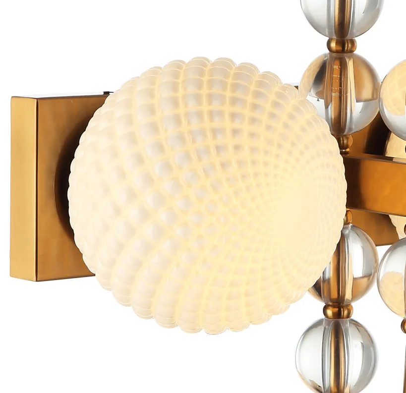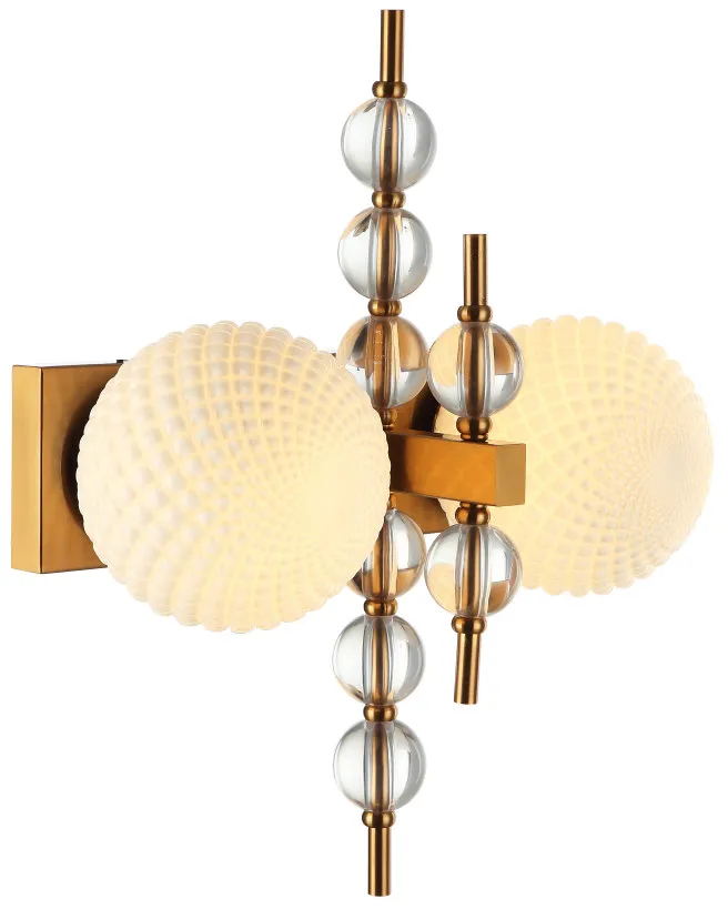 Светильник настенный из коллекции Queenly выполнен из металла, гальванизированного в цвет бронзы, и декорирован сферами из прозрачного стекла и плафонами из глянцевого фактурного стекла белого цвета. Светильник настенный коллекции выглядит стильно и респектабельно. Премиальное качество и неповторимыи? дизаи?н светильников идеально подои?дут в современные и дизайнерские интерьеры.