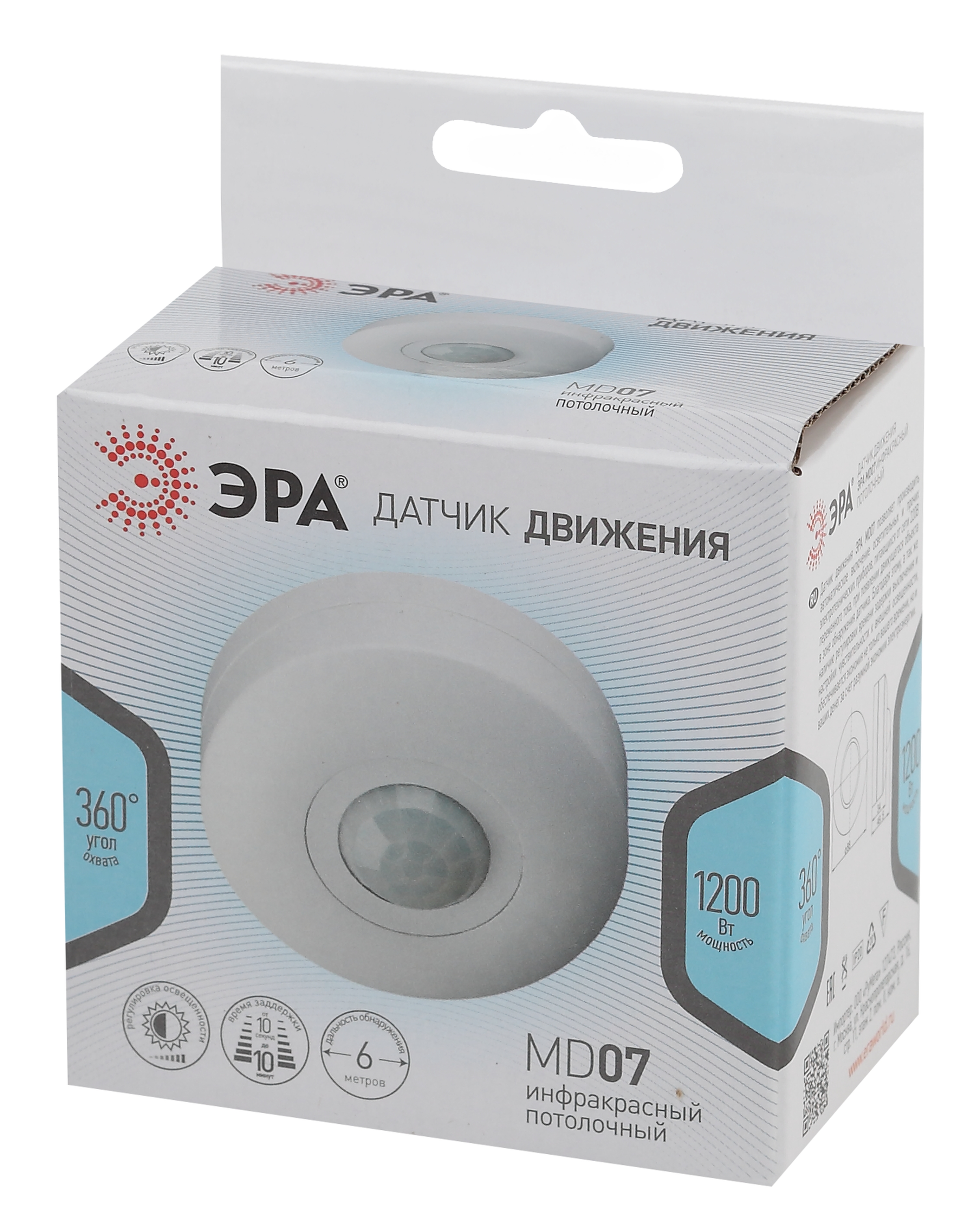 ЭРА MD 04 Датчик движения настенный позволяет производить автоматическое включение осветительных приборов, питающихся от сети 220 В, при появлении движущегося объекта в зоне обнаружения датчика. Благодаря этому , а также наличию регулировки времени задержки выключения и настройки чувствительности к внешней освещенности, обеспечивается экономия не только вашего времени, но и денег за счет разумной Экономии электроэнергии.