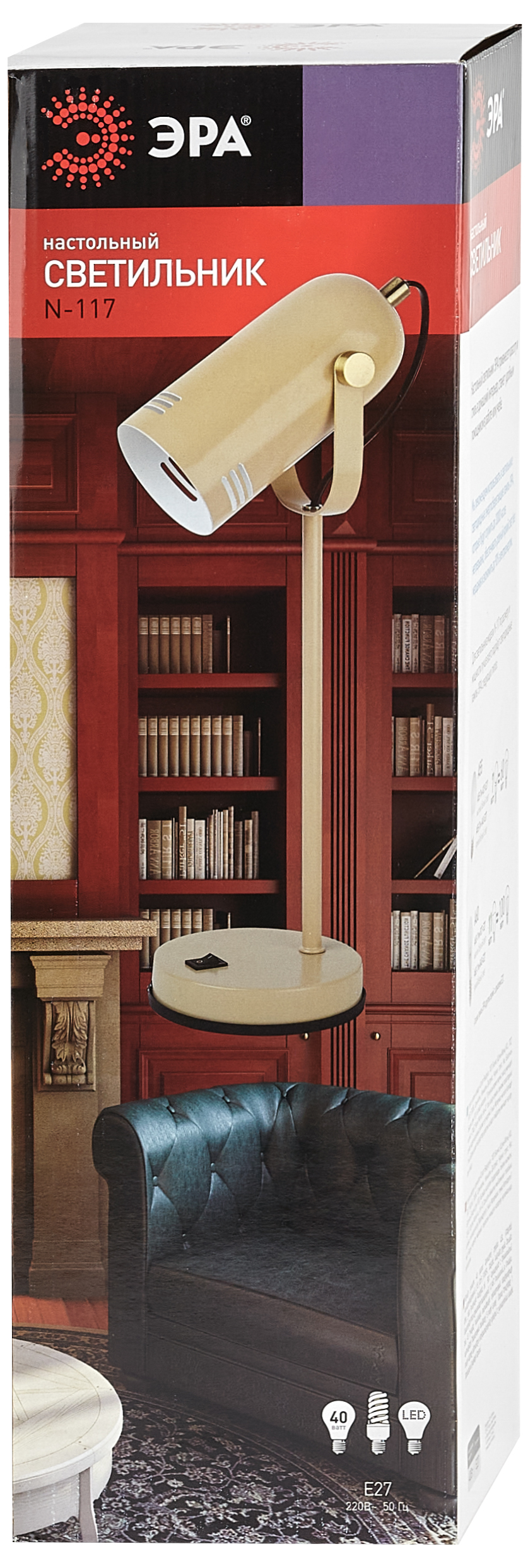 Красивый и удобный настольный светильник ЭРА N-117-Е27-40W-BG в стильном "ретро" корпусе. Может использоваться с разными источниками света - лампой накаливания, компактной люминесцентной лампой (КЛЛ) или светодиодной (LED) лампой. Прочный металлический корпус украшен гальванизированными элементами. Подвижный плафон позволяет регулировать направление света. В числе преимуществ для комфортного использования - устойчивость конструкции и оптимальные размеры для размещения на столе. Трендовый дизайн и актуальное сочетание цветов (бежевый корпус с матовыми золотистыми деталями) сделают этот светильник изюминкой интерьеров, особенно в стиле лофт или минимализм.