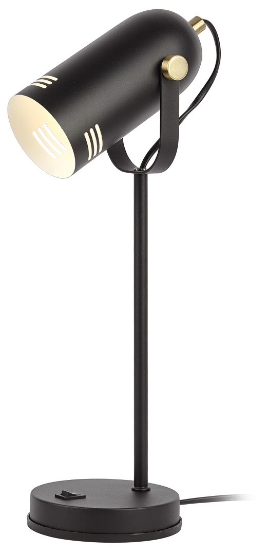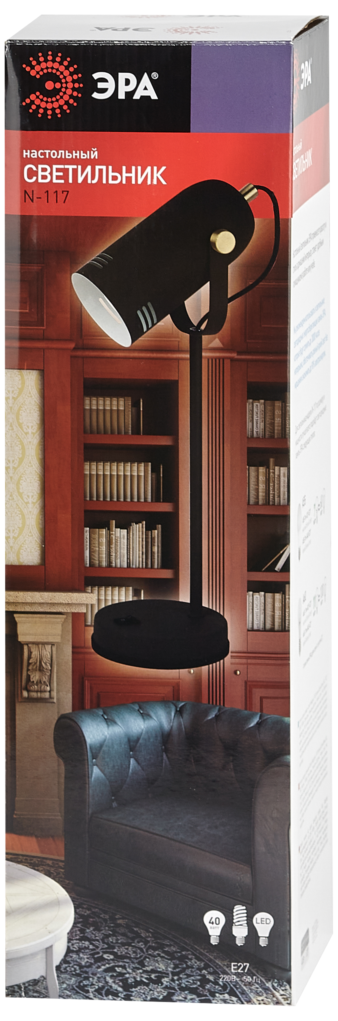 Красивый и удобный настольный светильник ЭРА N-117-Е27-40W-BK в стильном "ретро" корпусе. Может использоваться с разными источниками света - лампой накаливания, компактной люминесцентной лампой (КЛЛ) или светодиодной (LED) лампой. Прочный металлический корпус украшен гальванизированными элементами. Подвижный плафон позволяет регулировать направление света. В числе преимуществ для комфортного использования - устойчивость конструкции и оптимальные размеры для размещения на столе. Трендовый дизайн и актуальное сочетание цветов (черный корпус с матовыми золотистыми деталями) сделают этот светильник изюминкой интерьеров, особенно в стиле лофт или минимализм.