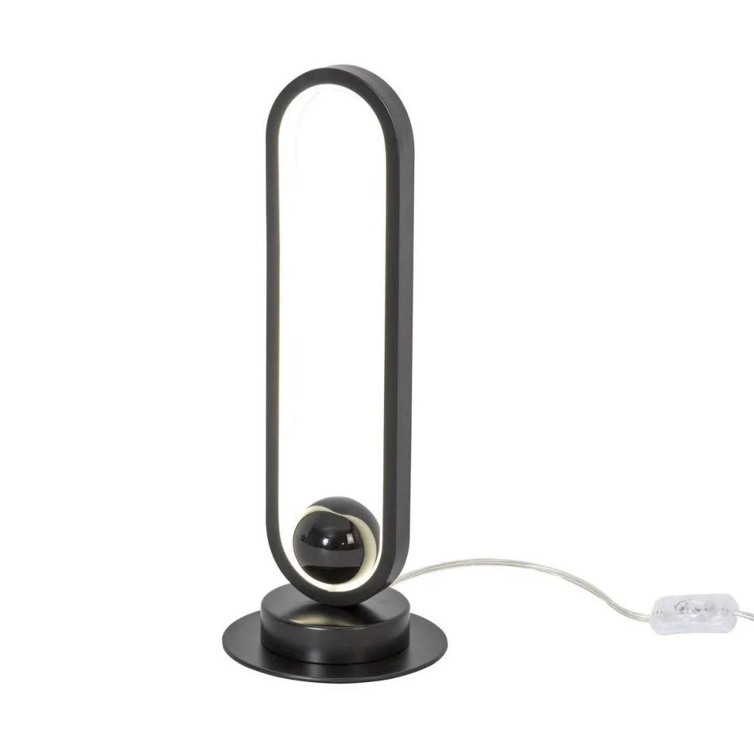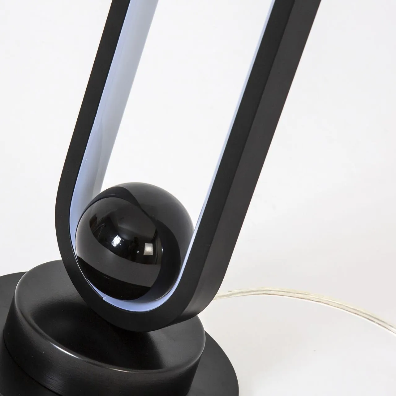 Металлический каркас матового черного цвета, глянцевое черное покрытие декоративного шара, встроенная LED лента, выключатель на проводе.