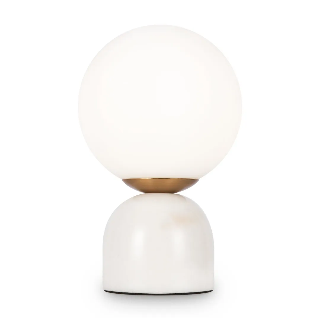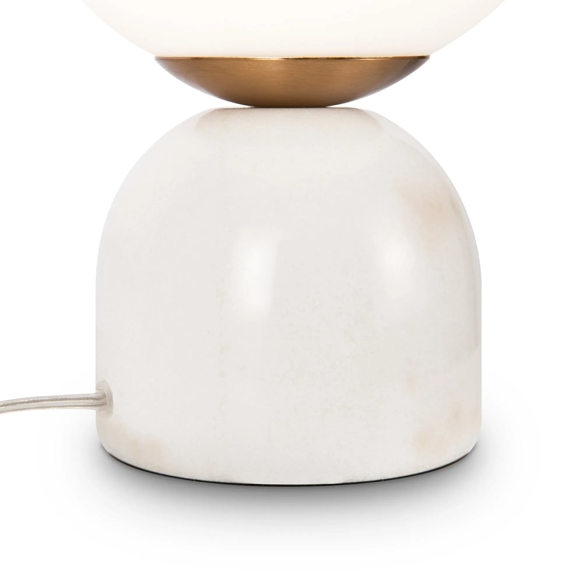 Материал основания — натуральный мрамор с уникальным рисунком. Цвета — белый, черный. Шаровидный плафон. Функция touch-dimming позволяет регулировать яркость света. Источник света — лампа с цоколем E14.