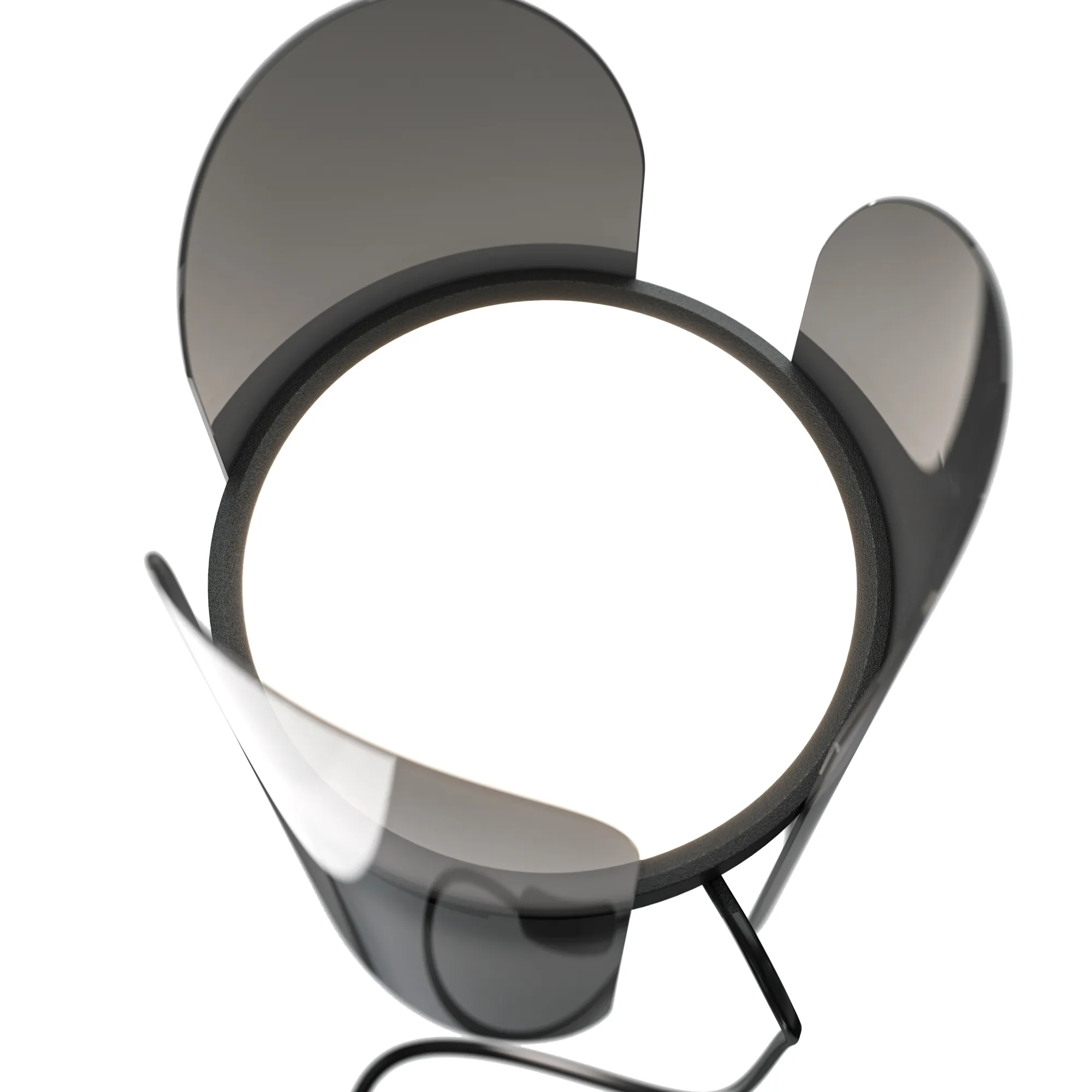 Insight – серия со свежим взглядом на дизайн и световое искусство. В металлическом основании черного оттенка заключены LED-источники. Расположенные сверху и снизу и закрытые матовым рассеивателем, они мягко распределяют двусторонний поток света. Отражаясь в тонированном декоре из акрилового стекла, свет окутывает лампу, подчеркивая нетривиальный силуэт. Расположив светильник ближе к стене или мебели, можно создать на поверхности акцентный светотеневой рисунок. Эффектный арт-объект украсит современное пространство спальни, гостиной, кабинета и станет мощным источником зонального света. Неординарный облик легко адаптируется в сдержанном mid-century modern или контемпорари, в расслабленном фьюжн и лаконичном минимализме.