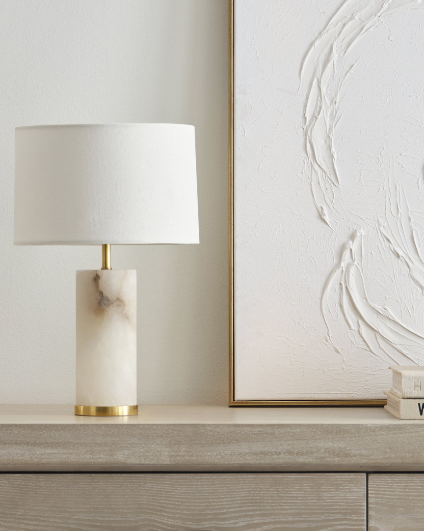 Настольная лампа «Прая» - это выполненная в изысканном американском стиле, в духе современной классики. Она станет элегантным акцентом в интерьере спальни, гостиной или кабинета, придавая пространству атмосферу уюта и благородной сдержанности. Основание лампы изготовлено из натурального алебастра — природного камня, известного своей мягкой фактурой и утончённой полупрозрачностью. Благодаря природному происхождению материала, каждая лампа имеет уникальный мраморный рисунок, что делает каждое изделие неповторимым. Тёплая латунная фурнитура гармонично сочетается с текстурой алебастра, а абажур из светлого текстиля мягко рассеивает свет, создавая комфортное освещение. Диаметр абажура в самом широком месте составляет 27 см, а общая высота лампы — 40,4 см. Модель «Прая» идеально впишется в интерьер, оформленный в стиле американская классика, и подчеркнёт утончённый вкус владельца.