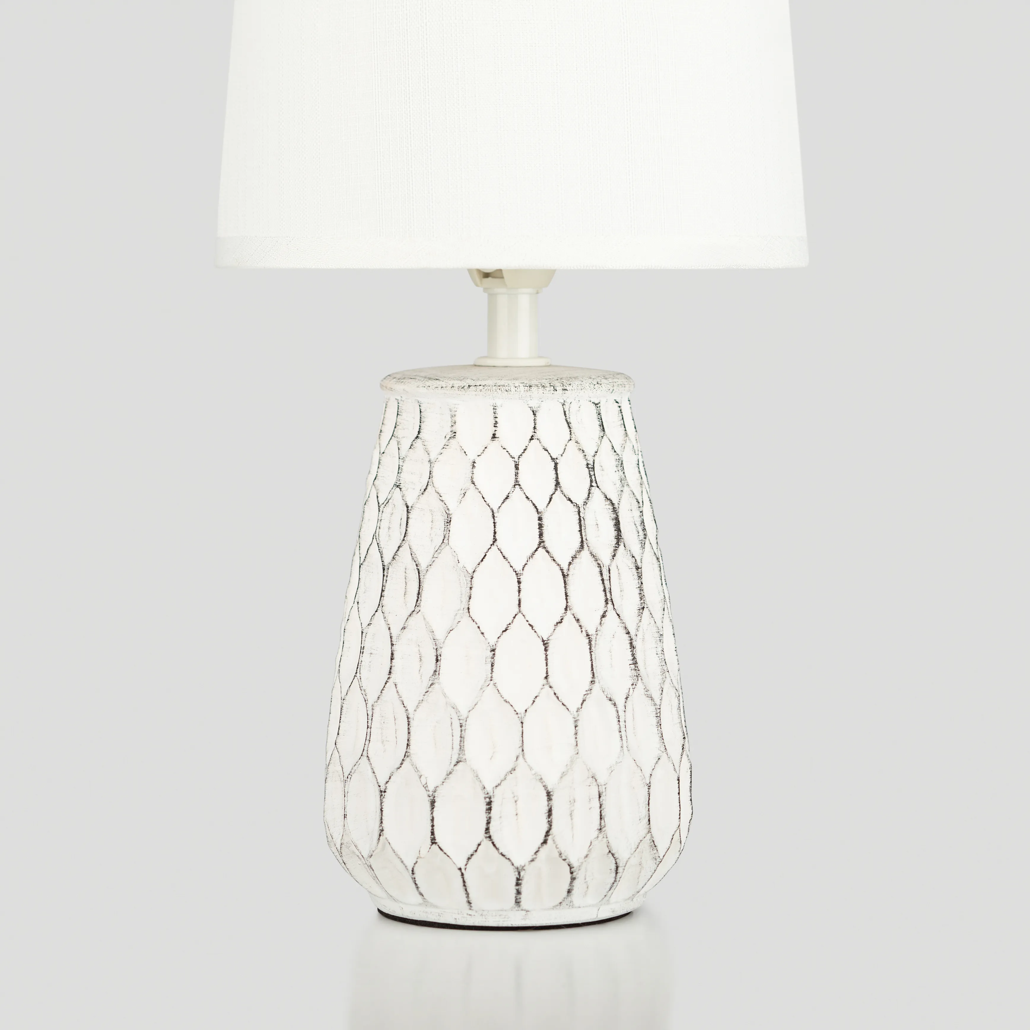Настольная лампа керамическая Rivoli Bella (арт. 7071-502) белая, с классическим тканевым абажуром и декоративным основанием из керамики. Красивый выпуклый узор основания лампы на стол напоминает пчелиные соты. Коллекцию дополняет настольный светильник Rivoli Bella с керамическим основанием чёрного цвета – арт. 7071-501.