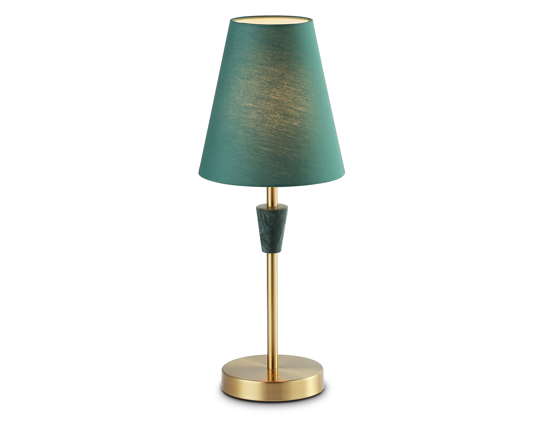 Настольный светильник из коллекции HIGH LIGHT. Модель LH75057 представлена в стиле неоклассика. Светильник выполнен из металлического каркаса цвета латунь, зеленого тканевого плафона, а также декорирован зеленым мрамором. Для данной модели подойдет сменная лампа с цоколем Е14. Светильник будет прекрасным дополнением в любом помещении.